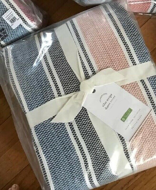 POTTERY BARN SILAS DUVET COVER Dream in color. The Silas Stripe Cotton Duvet Cover & Shams are crafted of thick cotton for a rustic feel, with muted colors and worn markings that resemble an heirloom. Made of 100% cotton. Duvet features a button closure and interior ties to help keep insert (sold separately) in place; sham features an envelope closure. Duvet reverses to solid white; sham reverses to same. Machine wash. Imported. Auction is for KING size duvet with TWO KING SHAMS. Items are BRAND NEW and in ORIGINAL PACKAGING! A d d i T i O N a l P h o T O s A v a i L a B Le U p O n R e Q u e S T PURCHASED DIRECTLY FROM POTTERY BARN. AUTHENTIC.