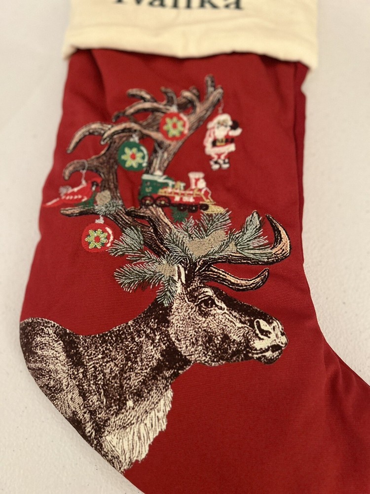 Pottery Barn Silly Stag Stocking Spot Mono “Ivanka” NWT Read There is a spot and scuff on the cuff of the stocking, please look at all photos! Monogrammed “Ivanka” - the monogram is not centered