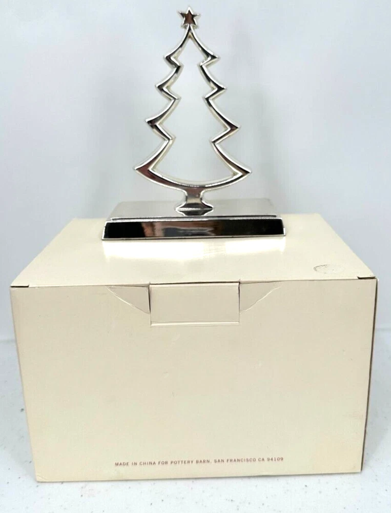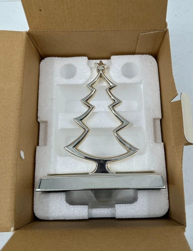 Pottery Barn Silver Tone Metal Christmas Tree Stocking Holder Original Box Silver Tone Metal Christmas Tree Shaped Outline With Star On Top Stocking Holder Original Box All Items from Smoke Free Pet Free Environment SHIPPING POLICY : All items are shipped within 3 business days of purchase and are carefully wrapped to protect during transit. International bidders pay actual shipping costs. International Buyers - Please Note: Shipping costs to foreign countries are determined by EBAY GLOBAL SHIPPING and not the seller, check with them for shipping costs to your country before you bid. Import duties, taxes, and charges are not included in the item price or shipping cost. These charges are the buyer’s responsibility. Please check with your country’s customs office to determine what these additional costs will be prior to bidding or buying. RETURN POLICY : All items come with a 30-day money back hassle-free guarantee. If for any reason you are not satisfied with your purchase, a full refund will be issued. Please note: Buyer will be responsible for all shipping fees with returned purchase. THANK YOU FOR YOUR BUSINESS : Please feel free to ask any questions you may have about the merchandise you are bidding on. Our goal is to provide our customers with an outstanding customer experience. FEEDBACK : Your feedback is important! If for any reason you are not completely satisfied with your purchase, please contact us immediately through the EBay messaging service, and we will do our very best to resolve any issues.