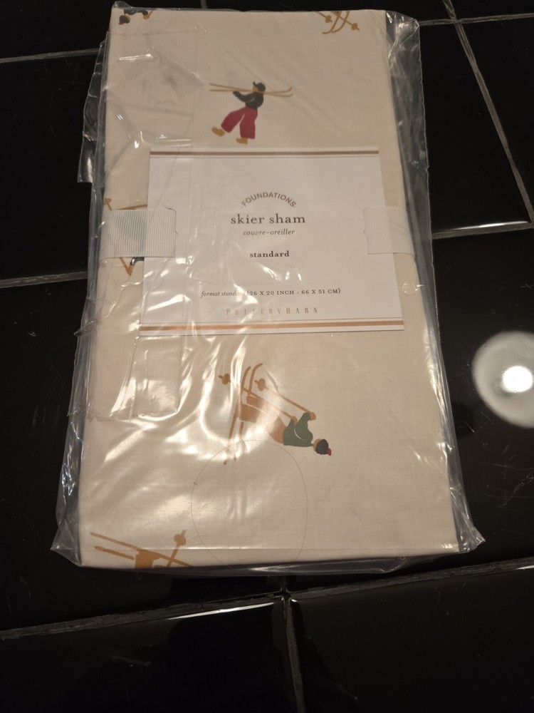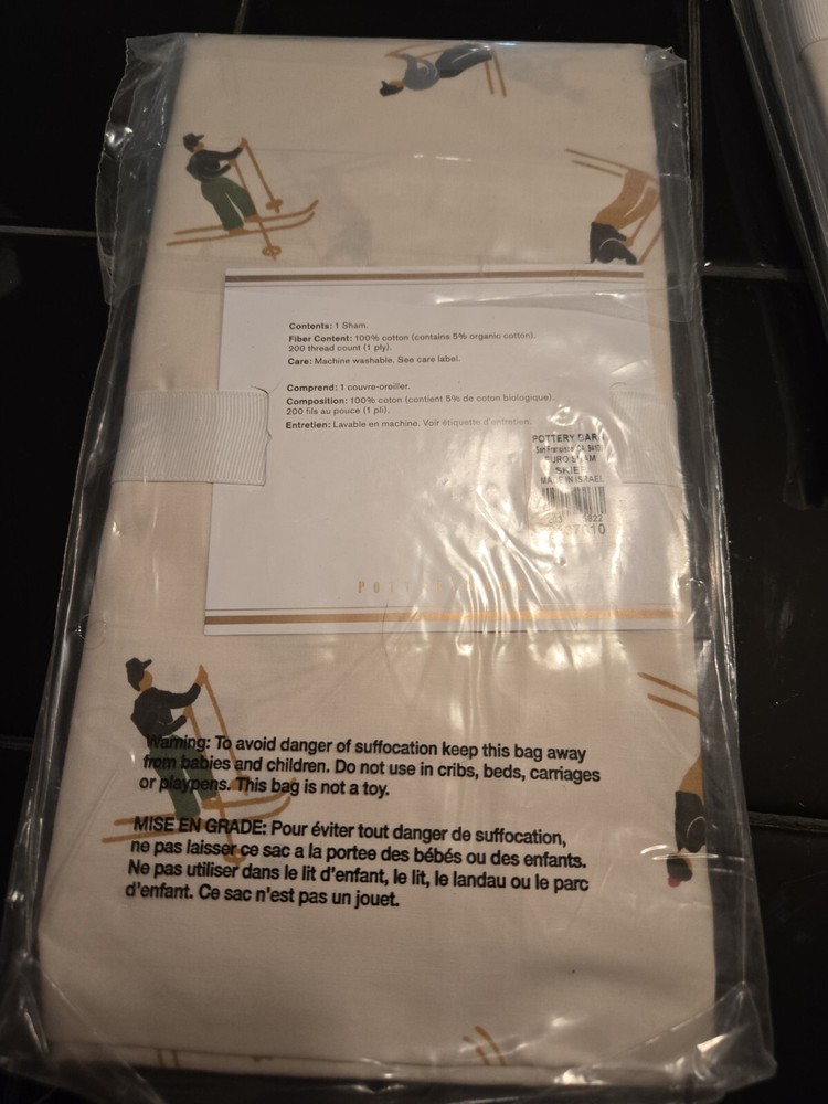Add a touch of contemporary style to your bedroom with this Pottery Barn Skier Pillow Standard Sham 26X20. Made of 100% organic cotton, this pillow sham is perfect for those who love winter sports themes. The multicolor pattern features a skier design, making it an ideal choice for teens, adults, and kids alike. This machine-washable pillow sham is easy to care for and is perfect for any bedroom. It measures 26X20 inches and is part of the Pottery Barn product line. Get ready to hit the slopes with this stylish and comfortable pillow sham. 3 available