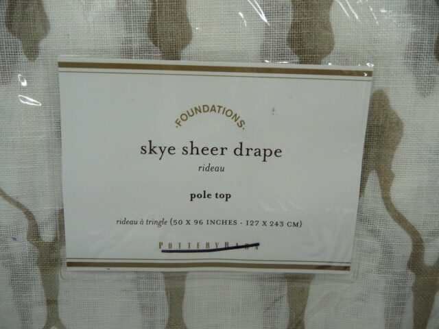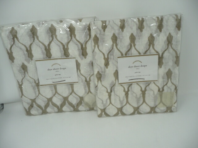 You are purchasing two Pottery Barn Skye Linen Sheer Drapes each panel measures 50x96" color is taupe style is POLE TOP starting with two sets, three panels are new in package. one panel has been repackaged but has original packaging folds