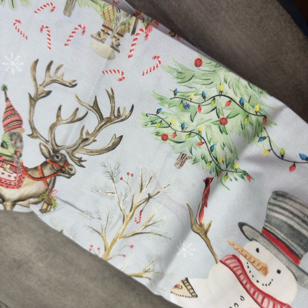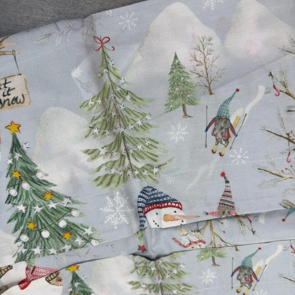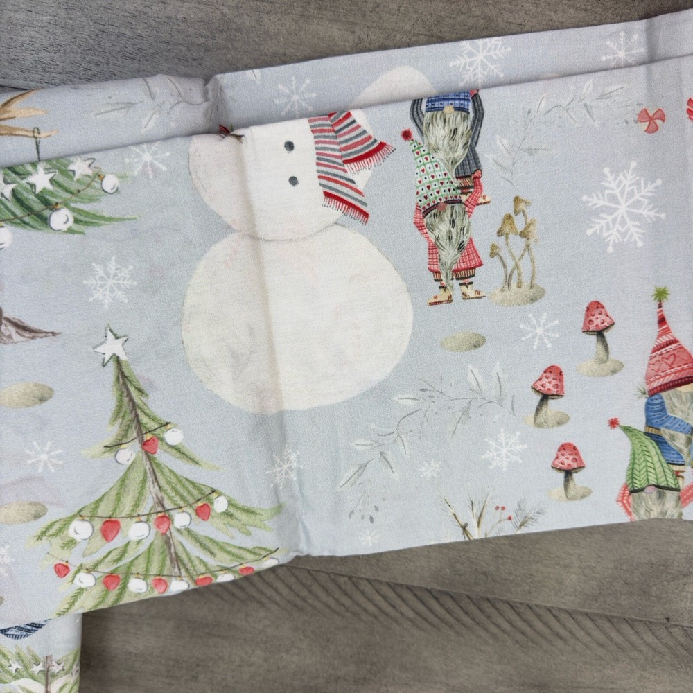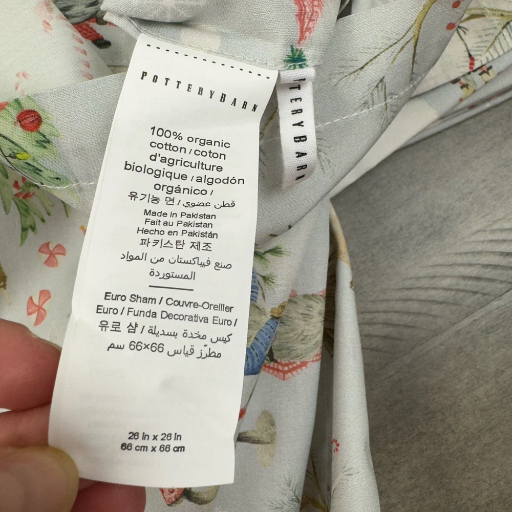 Pottery Barn Snow Day Gnomes Euro Pillow Shams Organic Cotton Set/3 Flaws Read New without tags items / open box - item ships without manufacturer packaging Dimensions: 26” sq Please note, there are some imprints from the gnome scarfs /some paint transfer onto the blank part of the shams - manufacturer flaws