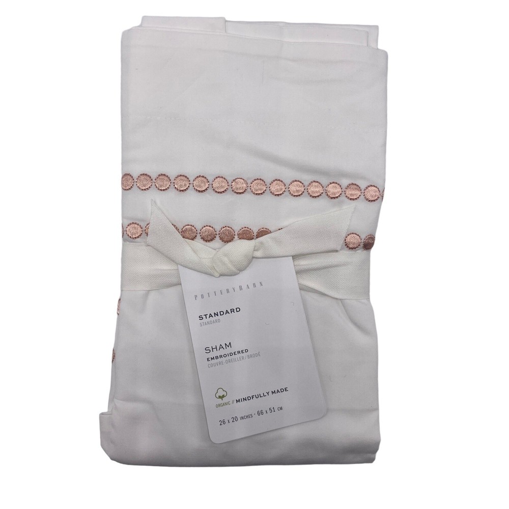 Pottery Barn Soft Rose Pink Pearl Euro Sham 100% Organic Cotton White with pink dots 20" x 26" rectangle...