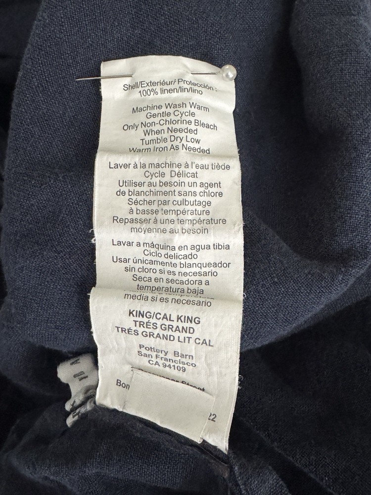 Pottery Barn Solid Blue Belgian Flax Linen King Duvet Cover...