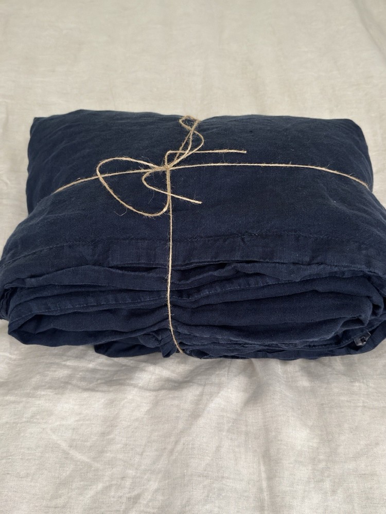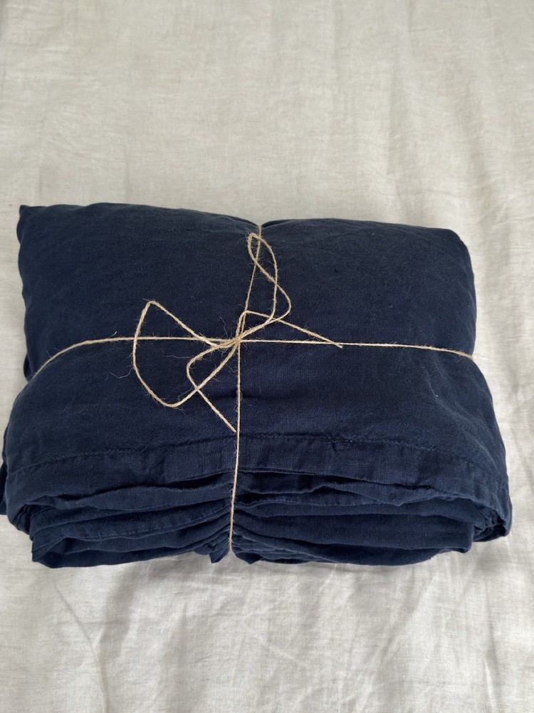 Pottery Barn Solid Blue Belgian Flax Linen King Duvet Cover