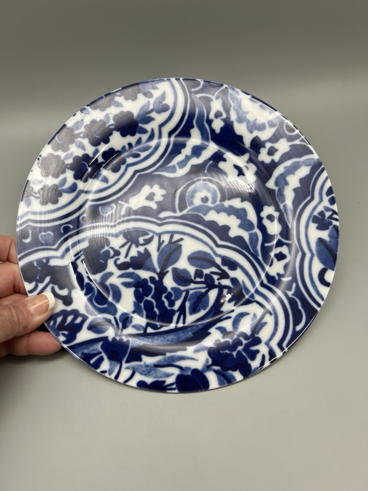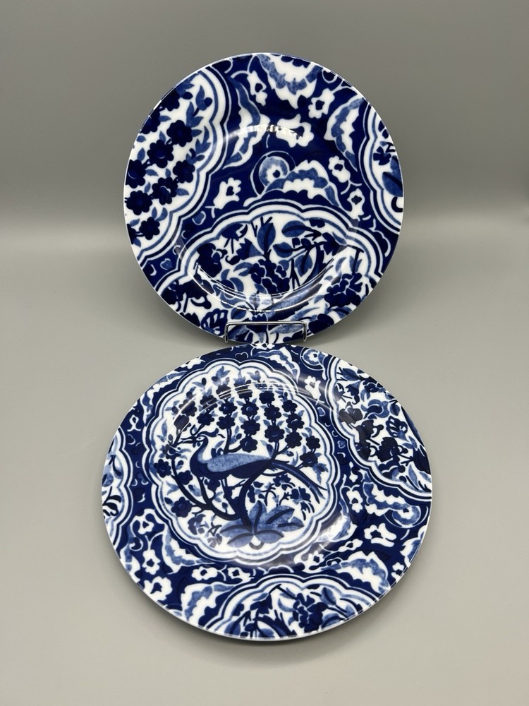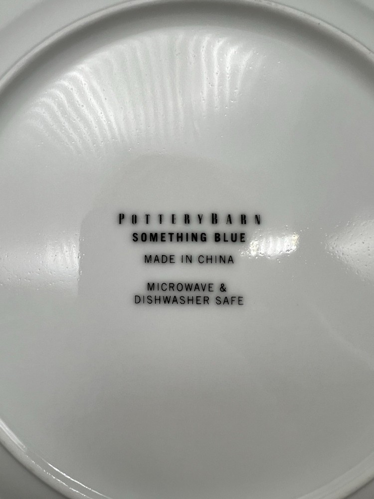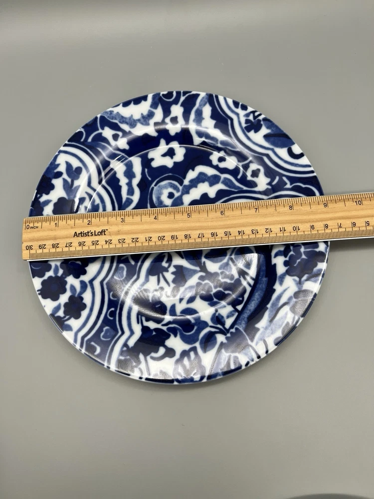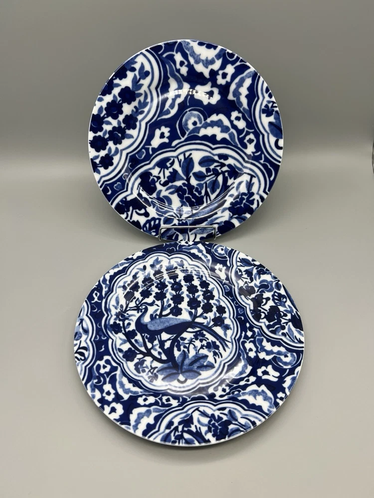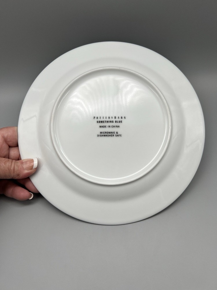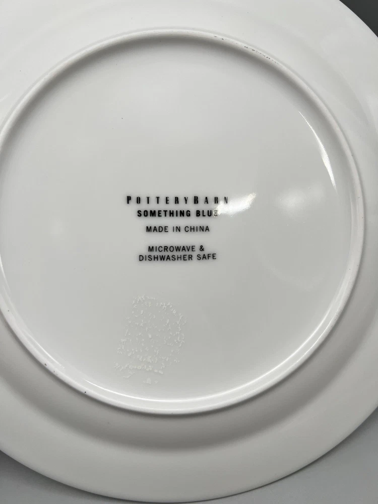 The Pottery Barn Something Blue Salad Luncheon Plates are a set of two 9 1/8" round plates featuring different blue patterns. These plates are perfect for all occasions and add a touch of elegance to any dining table. They are in excellent used condition with no chips or cracks and little sign of use. Thanks for viewing!
