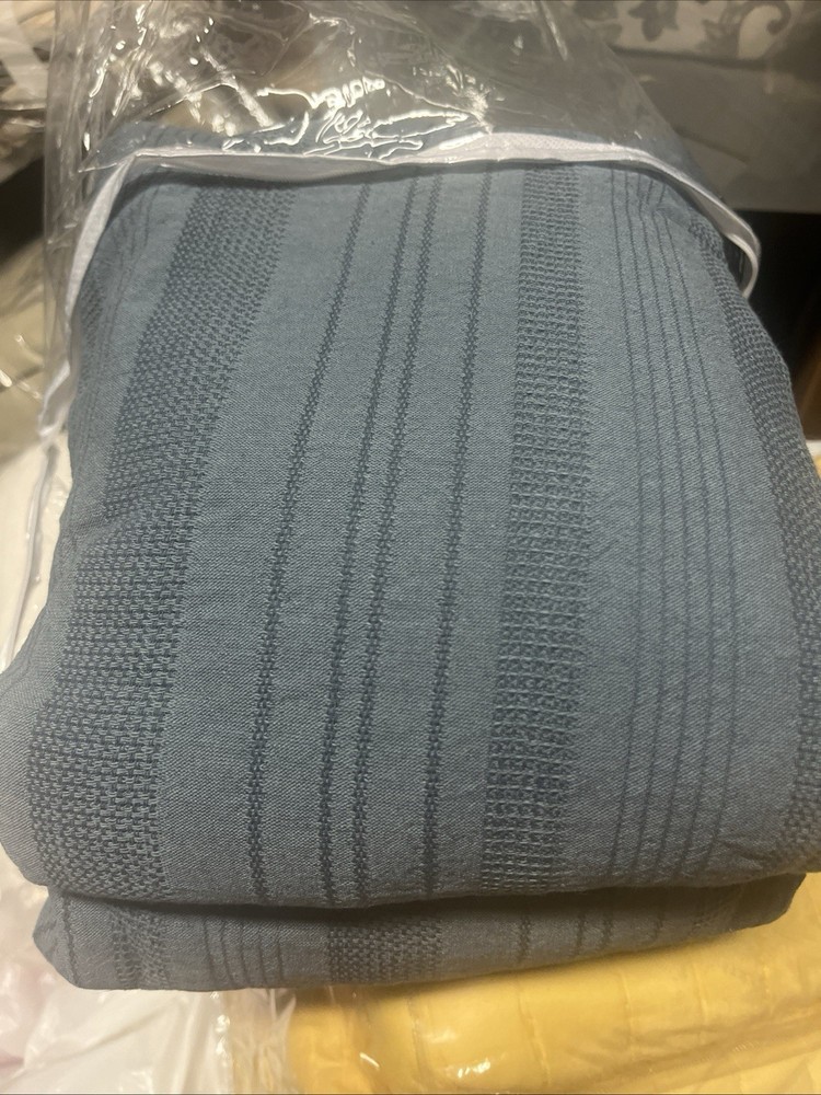 Up For Auction is - Pottery Barn Sonoma Textured Striped Duvet full queen steel blue New wo tag refolded Made with 100% cotton. Reverses to solid. Duvet features a hidden button closure with inner ties that keep insert in place; sham features a button closure. pet and smoke free