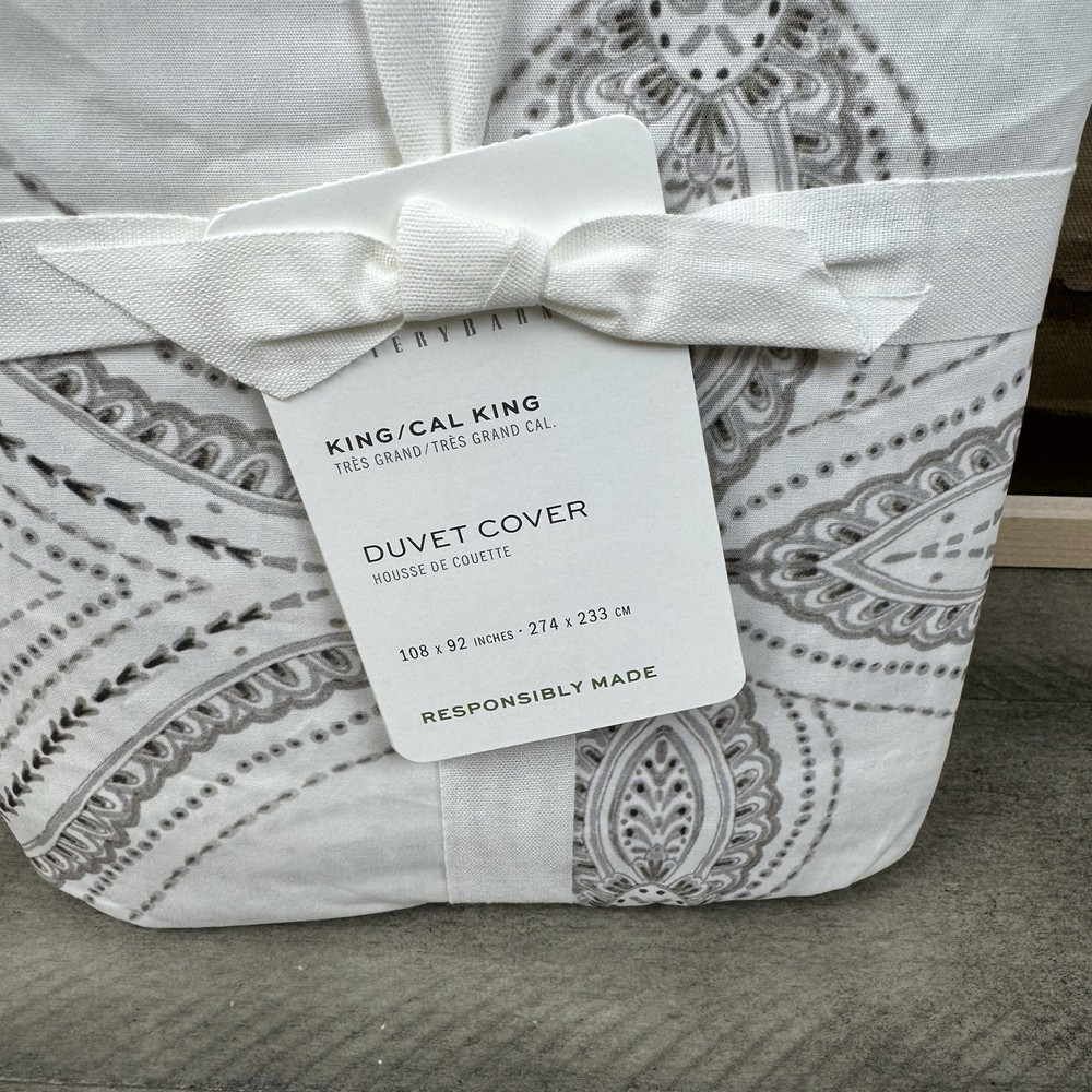 Pottery Barn Sonya Medallion Organic Cotton Duvet Cover King/Cal. King Gray NWT New with tags item / open box - item ships without manufacturer packaging Dimensions: 108”x92” There is a little bit of ...