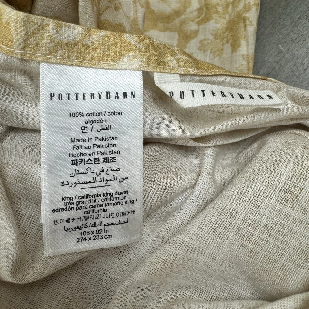 Pottery Barn Sorrel Toile Duvet Cover King/Cal. King Harvest Gold Red Mark Read New without tags item / open box - item ships without manufacturer packaging Please note, there is a small red mark on one side of the duvet / reference all photos There is a bit of wrinkling throughout from handling Dimensions: 92" l x 108" w