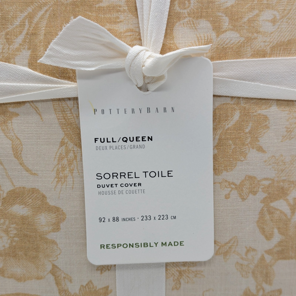 NEW Pottery Barn Sorrel Toile Floral Duvet Cover – Full/Queen – Harvest Gold Add a touch of timeless elegance to your bedroom with this brand new Pottery Barn Sorrel Toile Duvet Cover in the warm and inviting Harvest Gold shade. Designed with a delicate floral toile motif inspired by vintage botanical prints, this duvet cover brings cozy sophistication to any space. Size: Full/Queen (approx. 92" x 88") Color: Harvest Gold Material: 100% cotton Closure: Button front Care: Machine washable Condition: Brand new, unused. Not in original packaging. Perfect for refreshing your fall bedding or layering with your favorite linens year-round, this classic piece offers both beauty and comfort—crafted with the quality you expect from Pottery Barn.