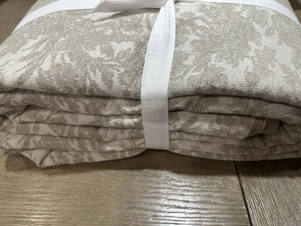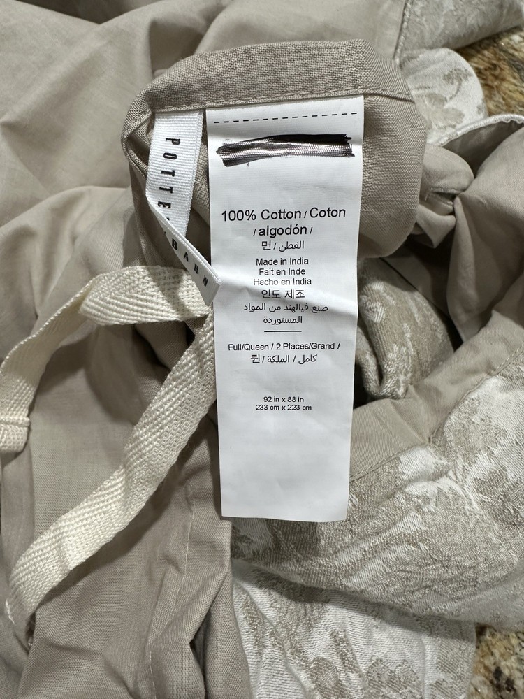 new without tags. attached tags have been marked out as shown in the photo. one pottery barn sorrel toile jacquard duvet in flax size is full/queen