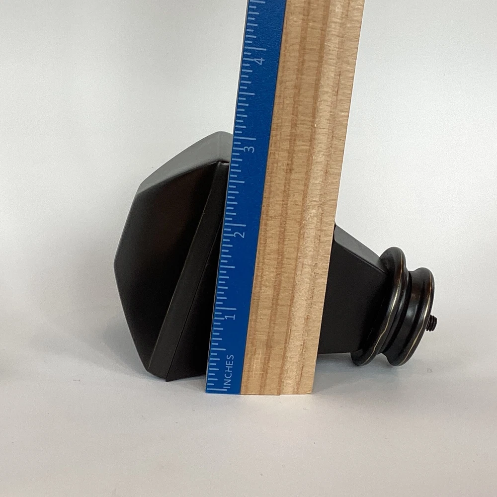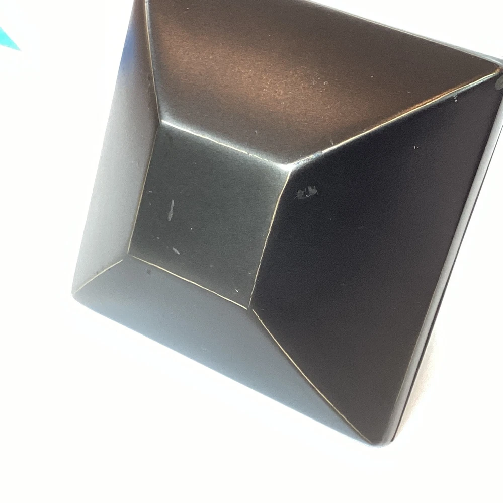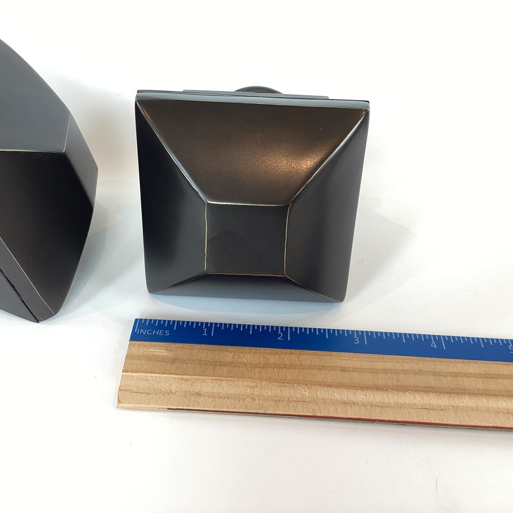 Set of 2 Pottery Barn brand large curtain rod finials in Antique Bronze. Made of steel with antique bronze finish. Finials are for larger size rod (not included) and measure: 2-3/4" at widest point and 4" long. The diameter on the base with the screw is 1-1/4". Please review photos for dimensions, condition, etc. **The last two photos show some scratches on screw-in side (which will not show) and light imperfections on one finial (may be from manufacturing process). Shipped with Priority Mail. Thank you!