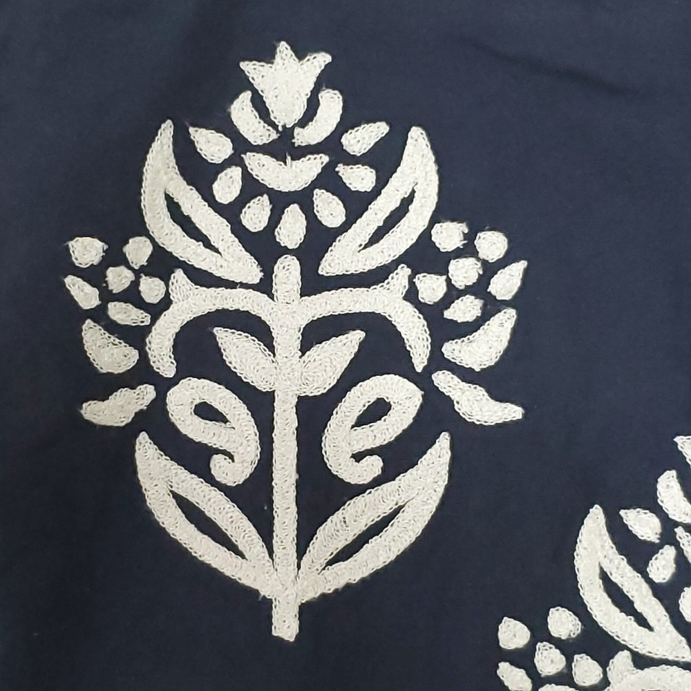 Pottery Barn Square Pillow Sham Floral Embroidered Navy Blue 18" Zip Up