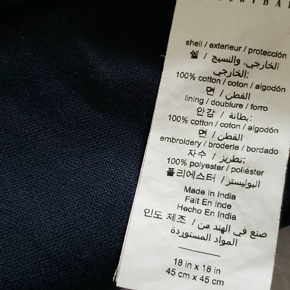 Pottery Barn Square Pillow Sham Floral Embroidered Navy Blue 18" Zip Up...