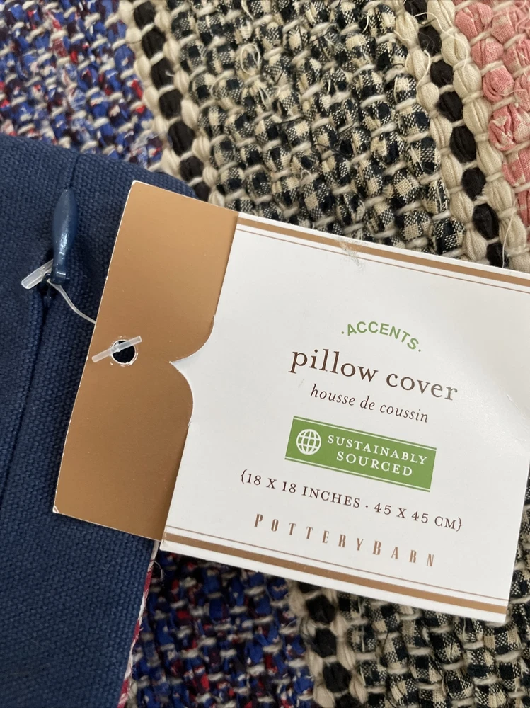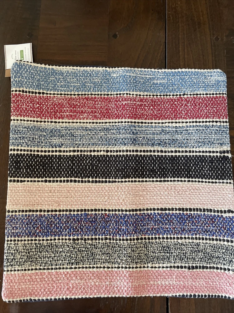 Pottery Barn Square Silas Striped Pillow Cover 18" Multi Blue Backside New W/tag.