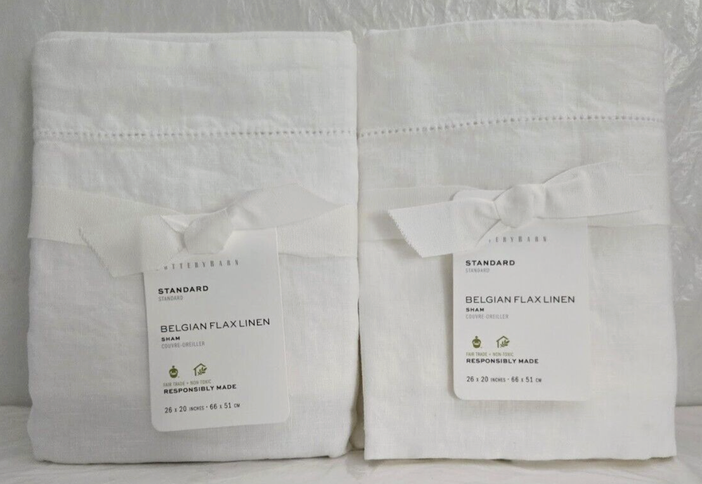 New With Tagged, as Shown on Photos. Elevate your bedroom with the understated elegance of the Pottery Barn Standard Belgian Flax Linen Pillow Shams. Crafted from 100% linen, these shams offer a luxurious, breathable feel that ensures comfort and style. Each sham measures 26 inches in width and 20 inches in length, fitting seamlessly onto your pillows for a polished look. In a crisp white hue, they provide a versatile foundation for any bedding ensemble. The solid Belgian pattern and modern style reflect a minimalist aesthetic that's both timeless and sophisticated. Care is a breeze with machine washable convenience, making these shams as practical as they are chic. Ideal for adults and teens alike, they bring a touch of refined simplicity to any sleeping space.