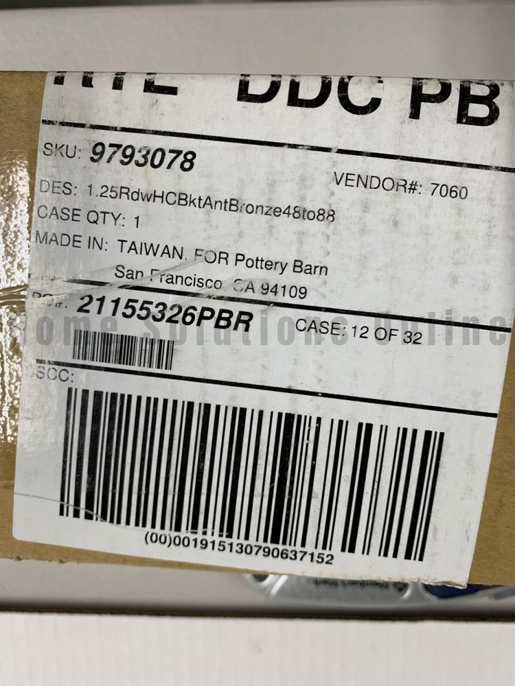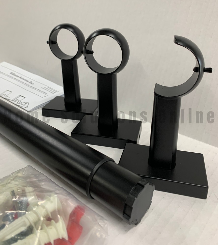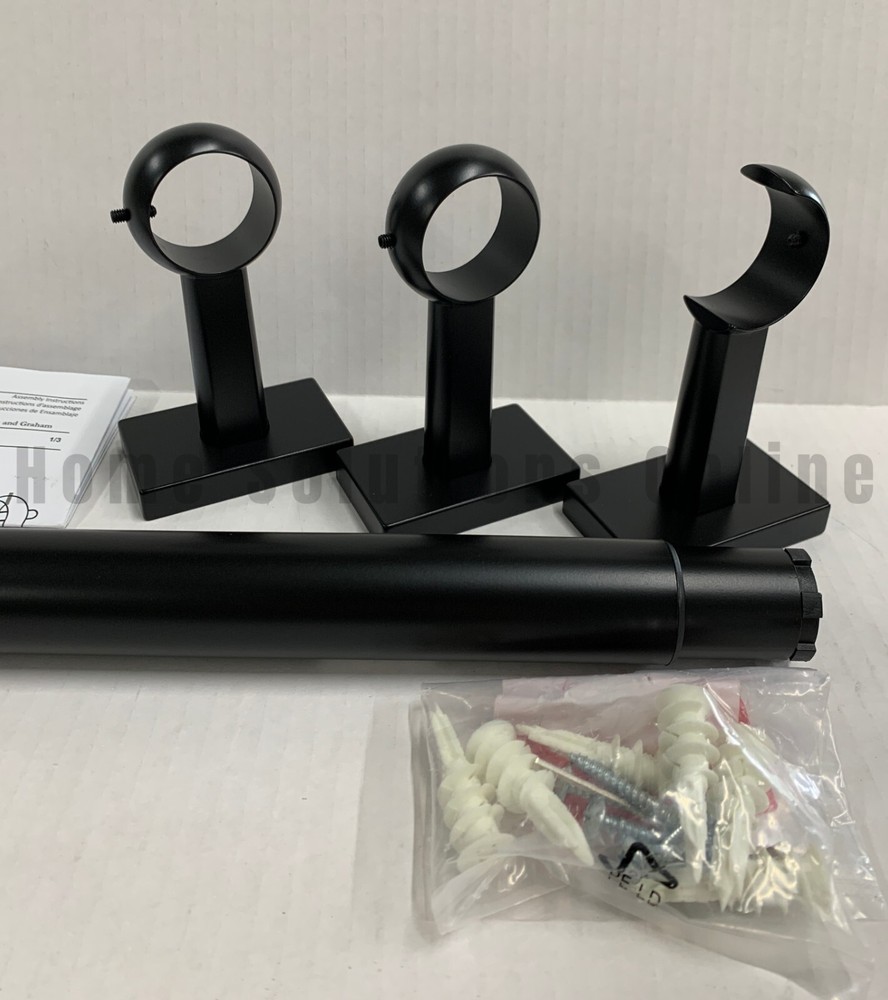 Pottery Barn Standard Curtain Rod & Wall Bracket Item is brand new Auction includes: 1 curtain rod and wall bracket PRODUCT DETAILS CONSTRUCTION: Rod is cast steel. All finials and other hardware are sold separately. Imported. CARE: Wipe with a slightly damp, soft cloth. To protect finish, avoid the use of household cleaners or abrasives. Mounting hardware included. Small rod comes with 2 brackets; All other sizes come with 3 brackets. DIMENSIONS: Rod: 1.25" diam Length: 48–88" l Brackets for 1.25" Single Rod: 1.75" w x 4.5" l x 2.75" h Weight Capacity: 40 lbs