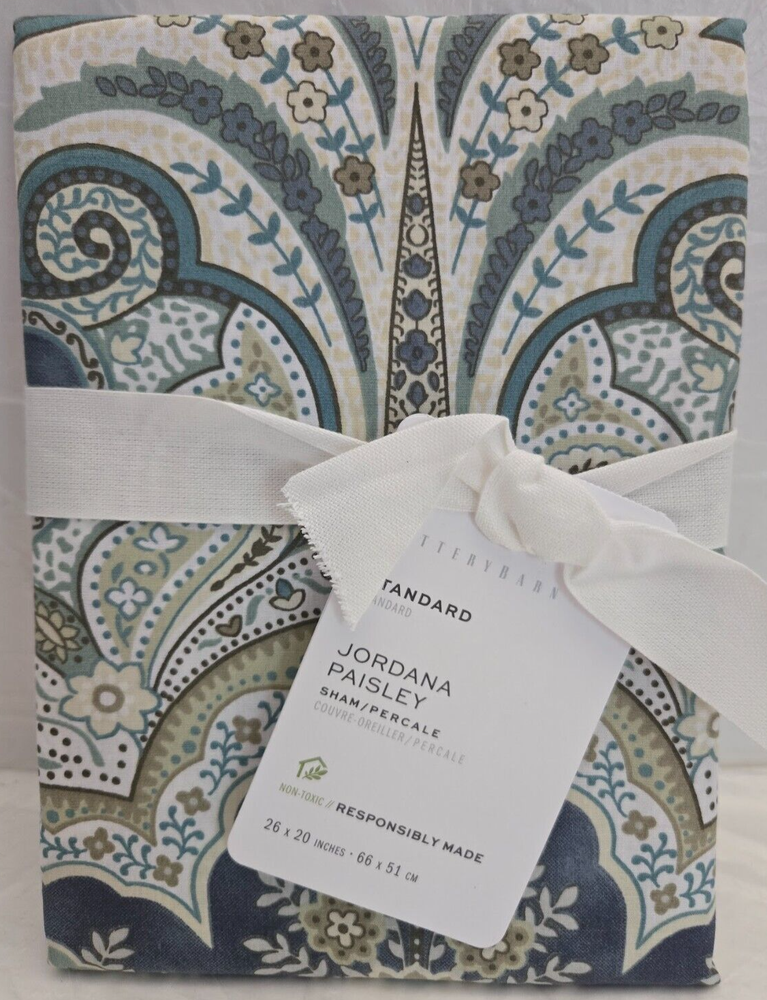 New With Tagged, Sold as Show on Photos. Add a touch of contemporary style to your bedroom with this Pottery Barn Standard Jordana Paisley 1-Sham. Measures 26 inches in length and 20 inches in width, and features a blue multicolor pattern that will complement any decor. Made of 100% cotton, this sham is machine washable for easy care. The envelope closure type ensures a secure fit, and it is suitable for both teens and adults. Perfect for any bedroom, this Pottery Barn Jordana Paisley Bedding is a must-have item for your home.