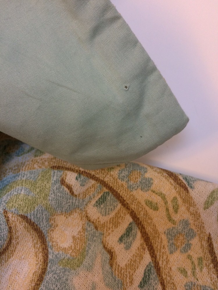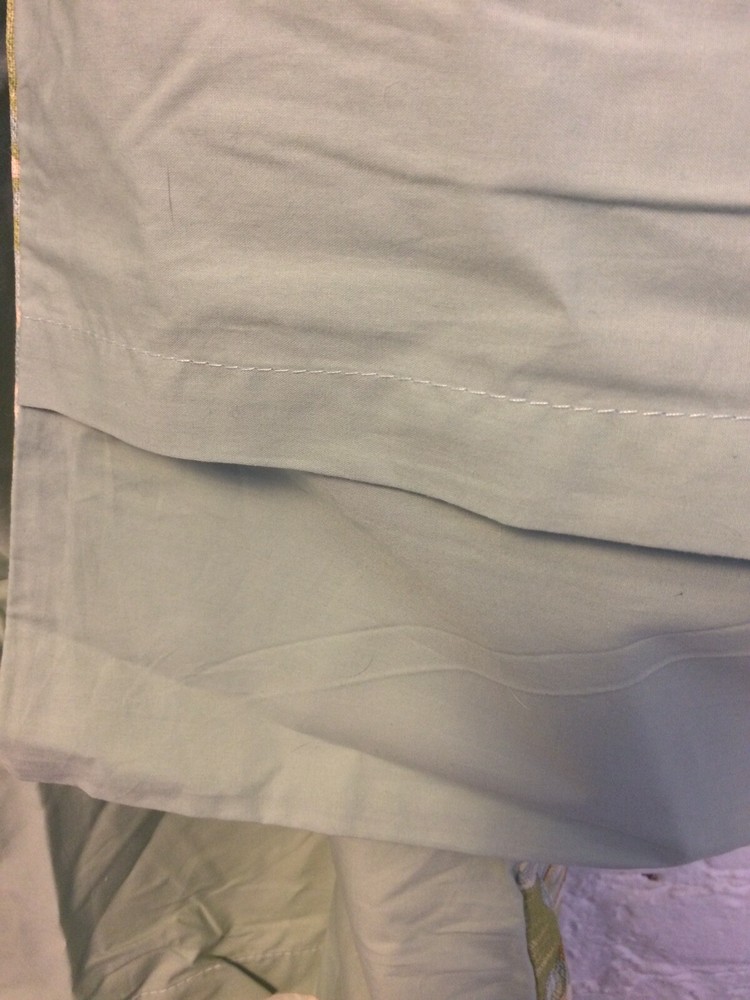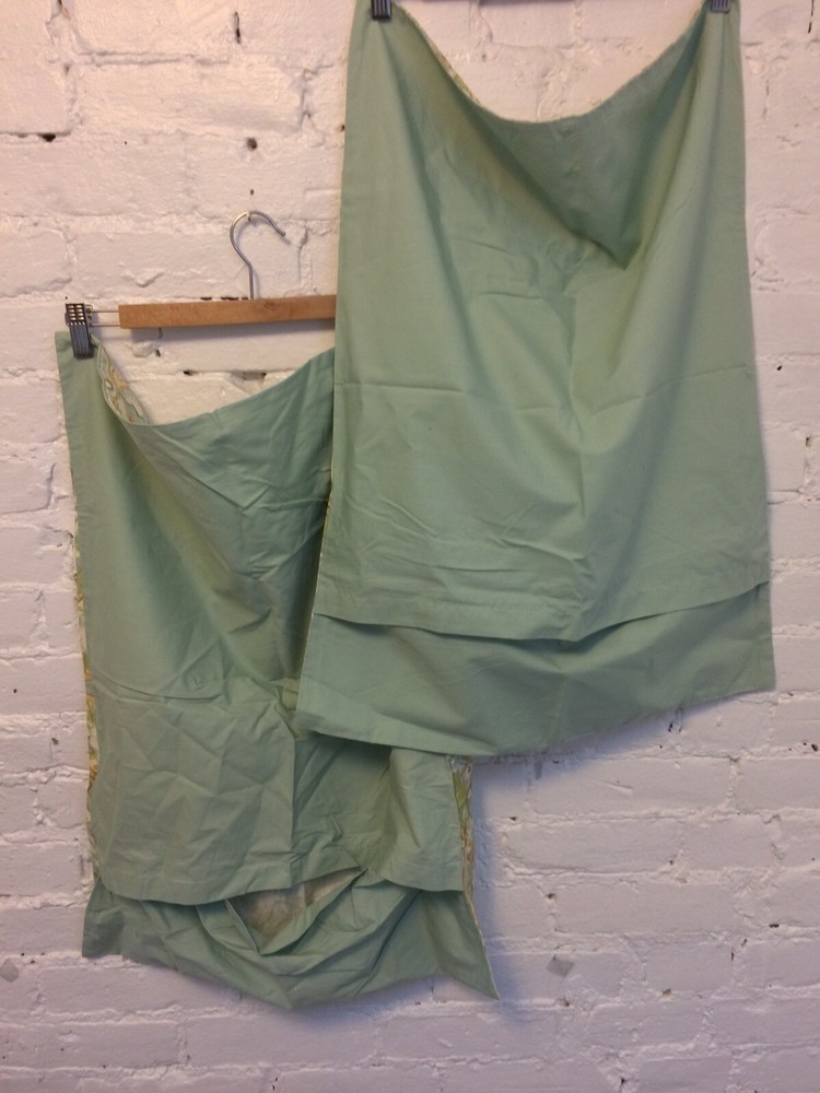 cotton canvas front in blue/green floral lot of two solid blue at back measure 25" X 19.5" in excellent condition but has two pinholes in one sham from tag we combine shipping, add to your cart before checkout please email with any questions or concerns about fabrics smoke and pet free store. thanks for stopping
