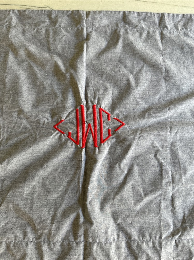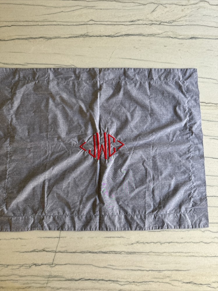 Pottery Barn Standard Sham Chambry Blue Denim Monogram "JWC" 100% Cotton