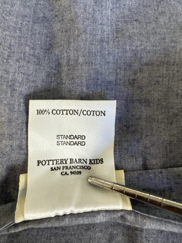 Pottery Barn Standard Sham Chambry Blue Denim Monogram "JWC" 100% Cotton...