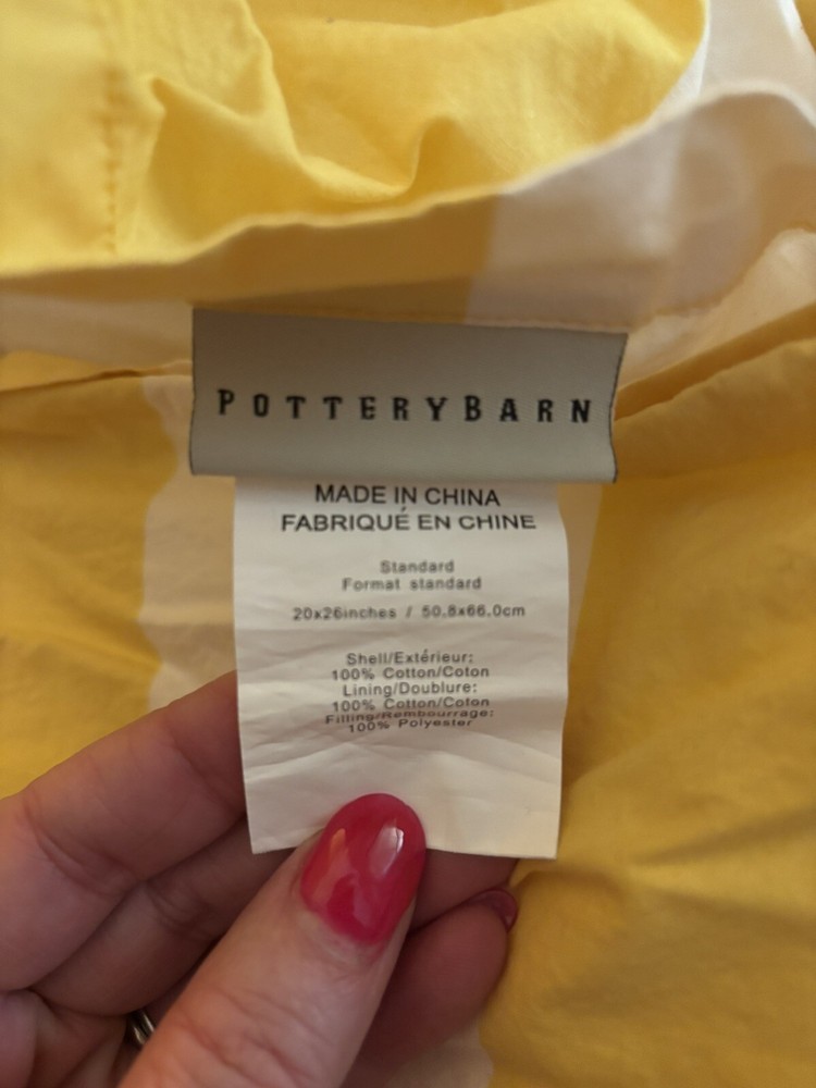 Beautiful and crisp yellow and white rugby stripe standard pillow shams from Pottery Barn. Please see pictures for more details and of the tags. They measure 24x19 inches