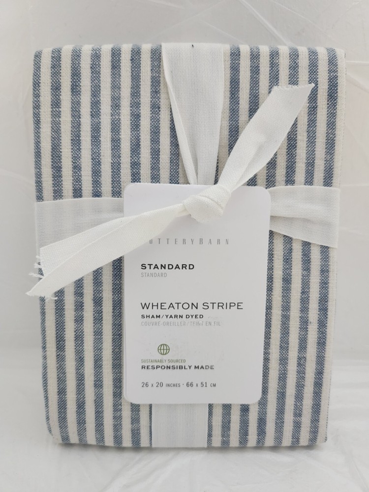 New With Tagged, as Shown on Photos. Introducing the Pottery Barn Standard Wheaton Stripe 1-Sham, a high-quality pillow sham designed to complement any contemporary style bedroom. The sham features a rectangular shape with a size of 26" x 20", and a striped pattern in white and chambray color. Crafted from a blend of 55% linen and 45% cotton, the sham is both soft and durable. It is machine washable and designed with care instructions for easy maintenance. The Pottery Barn Wheaton Stripe Bedding product line ensures that you get the best quality for your home.