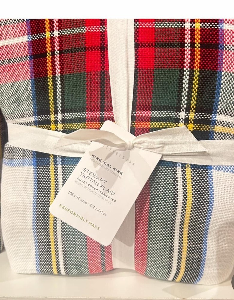 NEW Pottery Barn Stewart Plaid Cotton King Duvet & 2 Euro Shams In Ivory Add a touch of sophistication to your bedroom with this elegant Pottery Barn Stewart Plaid Cotton King Duvet Cover Set. The set includes a king size duvet cover and two king size shams in a beautiful ivory color. The plaid pattern adds a classic touch to the overall design, making it perfect for any bedroom decor. Made from high-quality materials, this duvet cover set is durable and long-lasting. Ideal for those who want to add a luxurious touch to their bedding, this set is perfect for any bedroom. New with tag