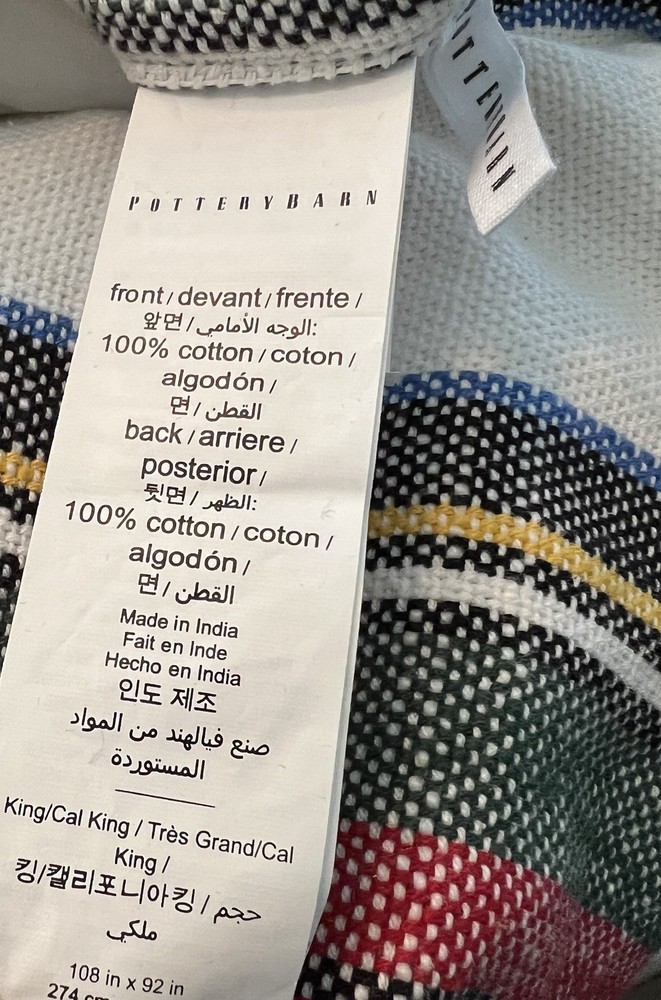 Material: Front is made from 100% yarn-dyed cotton. Reverses to solid. Secure Design: Duvet features a button closure and interior ties to help keep insert in place. Sham has an envelope closure. CARE INSTRUCTIONS Machine wash in cold water, gentle cycle. Use only non-chlorine bleach when needed. Tumble dry on low heat; remove promptly. Warm iron as needed.