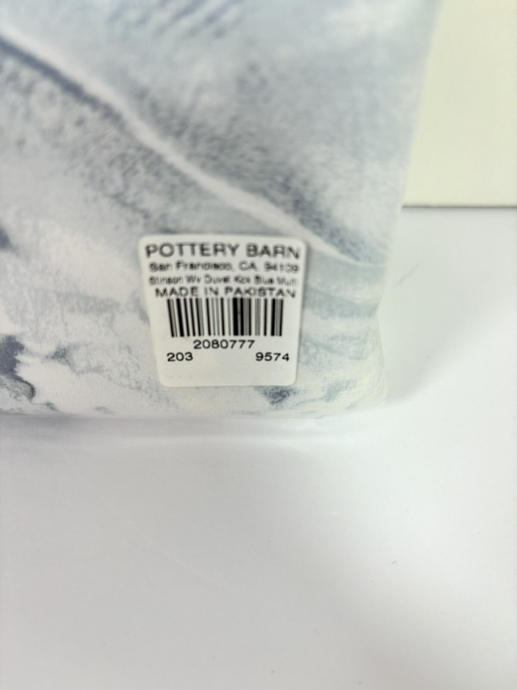 Pottery Barn Stinson Wave King Duvet Cover + 3 Euro Shams Color: Blue/White Duvet Cover: 92" x 108" Sham: 26" x 26" 100% organic cotton percale 200-thread count Machine wash Condition Specifics: Facto...