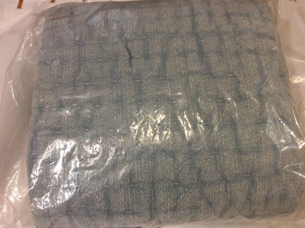 One King Quilted Sham by Pottery Barn in the Stonewashed Pick Stitch Bedding Collection. ~Sky Blue~ Sleep soundly in classic style with the refined yet casual look of this dreamy bedding. Stonewashed for ultimate softness, you can create a cozy retreat, season after season. Hand quilted of 100% cotton. 100% cotton fill. Reverses to same. Sham features an envelope closure. Machine Wash New Without Tags Pet Free/Smoke Free