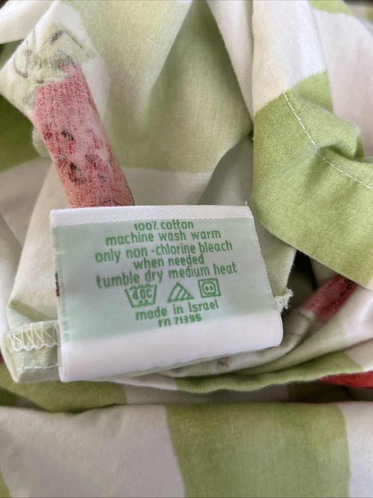 Pottery Barn Strawberry Fields cotton Duvet Cover, size Full/Queen. 66”x84” Listing is for duvet cover only, no shams ** there are two holes in one corner, see pics. Clean and stain free....