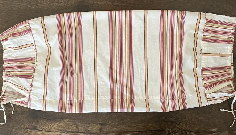 Pottery Barn Striped Bolster Pillow Sham Cover 16"x 26" Pink Red. Pottery Barn Striped Bolster Pillow Sham Cover is in excellent condition from smoke and pet free environment. 16"x 26” plus 5” on each end. Tie closure. 100% Cotton Please view all pictures carefully as they represent the actual item(s) you will receive, and current condition. Visit my eBay store for lots more AWESOME things. For multiple purchases I am always happy to combine shipping to save money when possible! I'm dedicated to exceptional customer service and strive for a 5 star rating on each transaction!