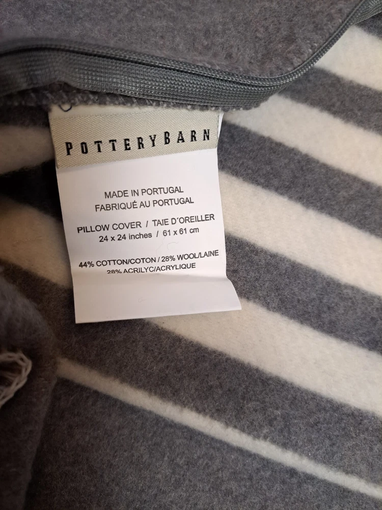Pottery Barn Striped Pillow Cover 24x24 White Gray Cotton Wool Blend Pair This pair of pillow cover is in pre-owned condition and sold as No rips,holes, or stains Some light pilling The overall condition is very good Measurements are approximate: 24 x 24 in. PLEASE SEE PHOTOS FOR DETAILS/REFERENCE/CONDITION Computer monitor and lighting, etc.can show colors differently ALL SALES ARE FINAL NO RETURNS ACCEPTED Please take time to view all of the photos and read all descriptions before buying SHIPS TO U.S ADDRESSES ONLY THANK YOU FOR LOOKING AND FOR YOUR INTEREST!