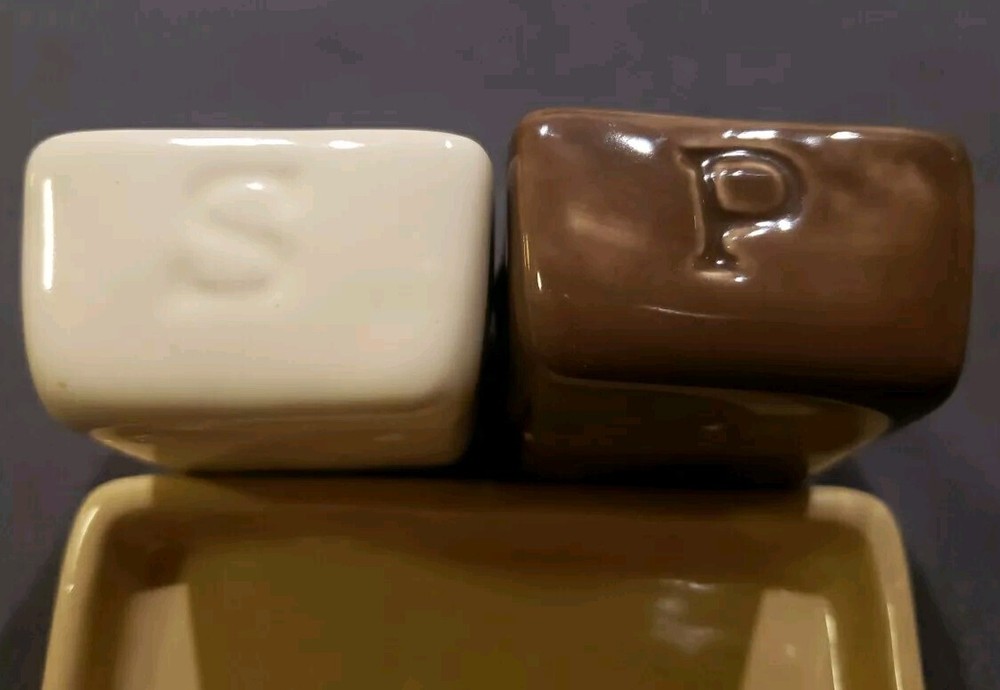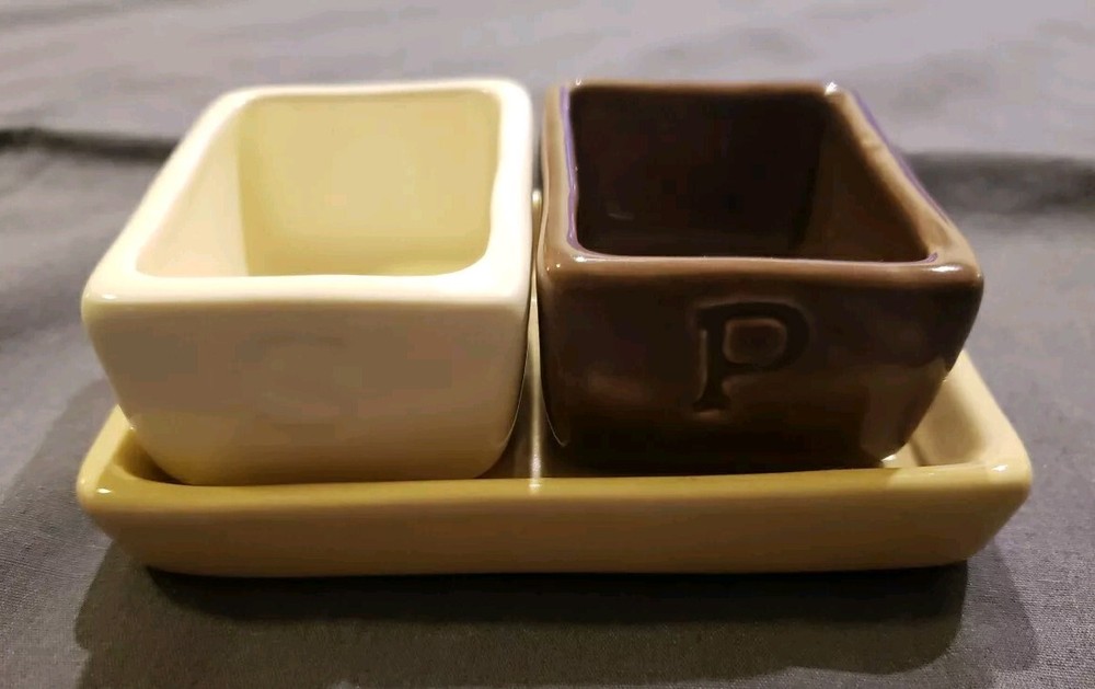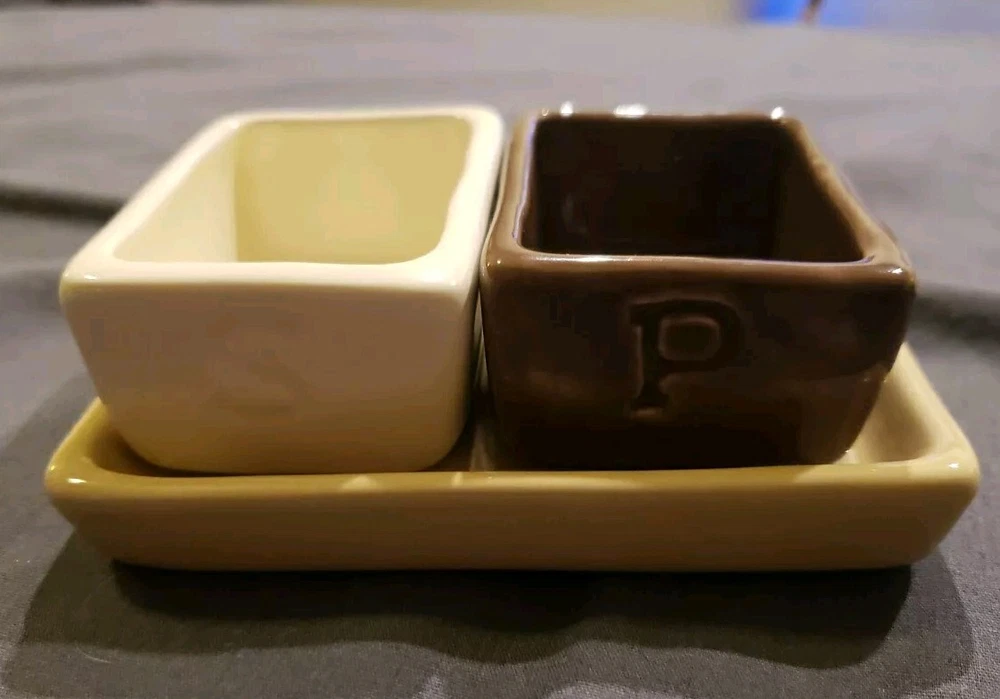 Pottery Barn Studio by Barbara Eugene Salt & Pepper Cellars on Tray 3 Tone - Beige / White / Chocolate...