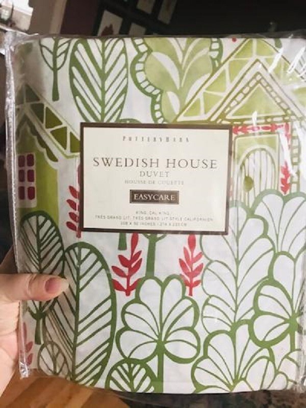 POTTERY BARN DUVET Beautiful SWEDISH HOUSE duvet. Imported. Auction is for KING duvet, sorry no shams with this auction. Item is NEW! P h o T O s A v a i L a B Le U p O n R e Q u e S T PURCHASED DIRECTLY FROM POTTERY BARN. AUTHENTIC.