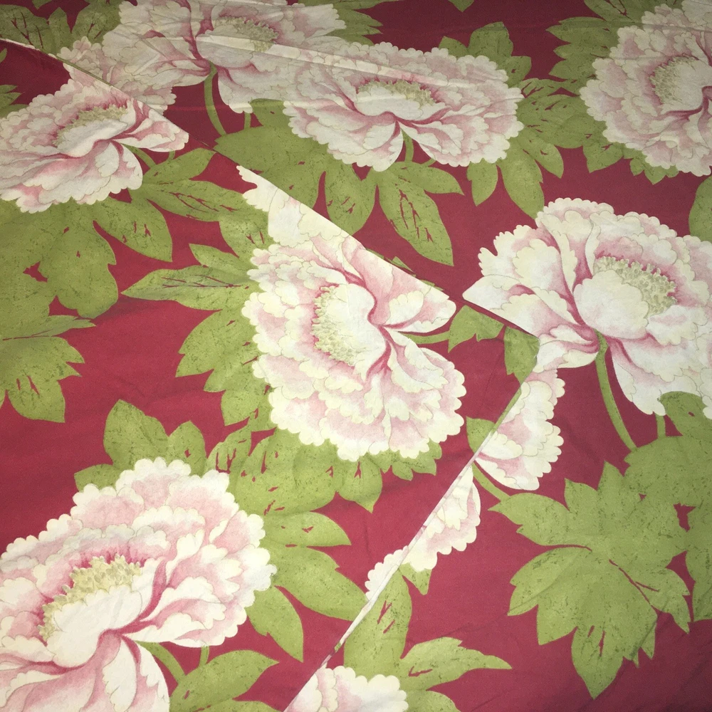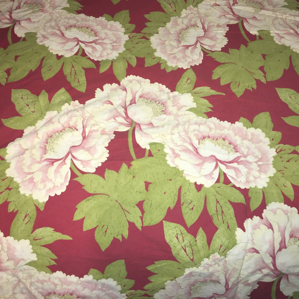 Add a touch of nature and luxury to your bedroom with this beautiful Pottery Barn Sydney duvet cover. Featuring a vibrant red raspberry pink and white peony floral pattern, this rectangular cover is made of 100% cotton material that is easy to care for and machine washable. With a thread count of 201-400 and a size of queen, this duvet cover is perfect for both teens and adults. The cover is reversible, not quilted, and comes with buttons for easy closure. It is a great addition to any bedroom decor and is sure to impress your guests. Made in Israel and part of the Pottery Barn product line, this duvet cover is a must-have for anyone who loves nature-inspired luxury.