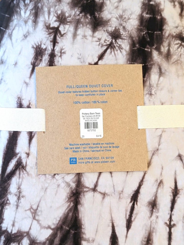 Pottery Barn Teen TIE DYE Oversized Duvet Cover Size: FULL/QUEEN Brown White Modern monochrome Rare and retired item! Brand new in original bag, only taken out to take pictures. Stored in a smoke free home always!