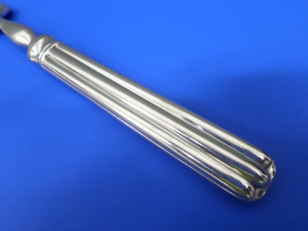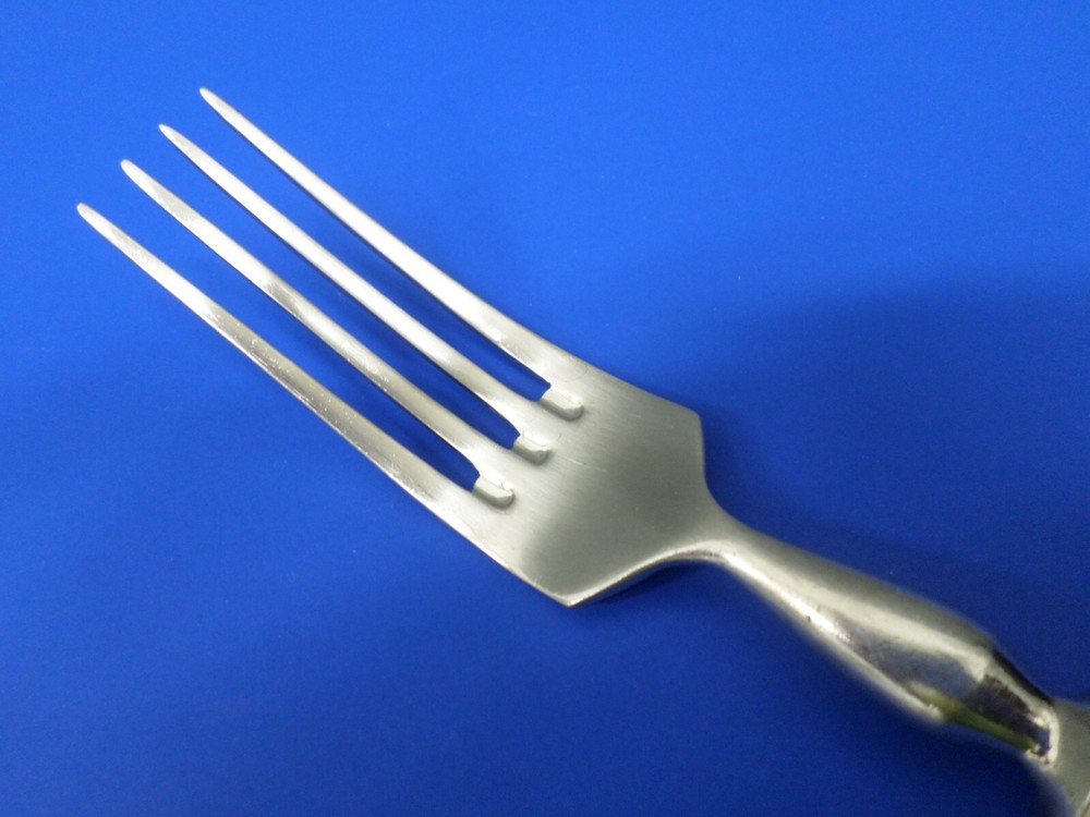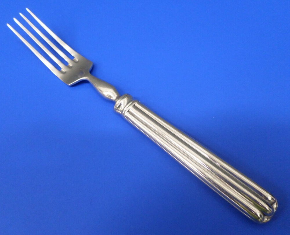 Pottery Barn TOULOUSE Glossy Ridges 18/10 Stainless Portugal Flatware 8 1/2" DINNER FORK - The tines of this piece do show normal signs of wear including light scratches from use and storage. No disposal damages. This piece would mix best with a USED / DAILY USE TYPE SET. Please see all pictures for further details and description.
