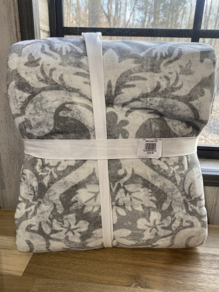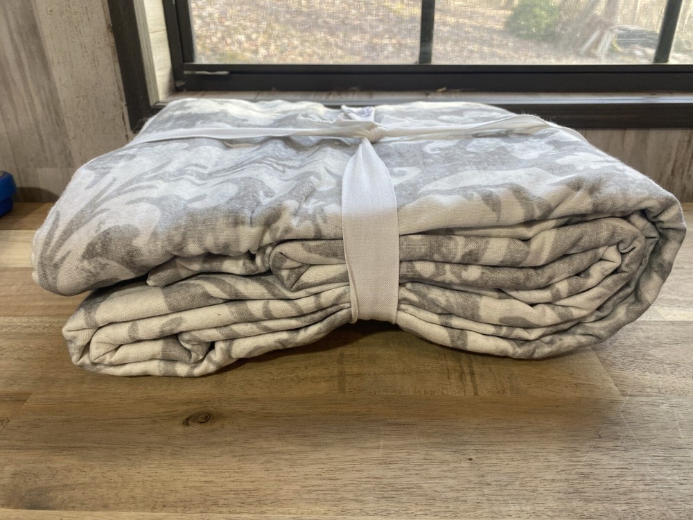 Material: Woven of 85% cotton and 15% linen. Secure Design: Duvet features a hidden button closure with inner ties that keep the insert in place; sham features an envelope closure. Reversible Design: Reverses to solid. Machine wash. Full/Queen: 88" long x 92" wide Duvet cover ONLY