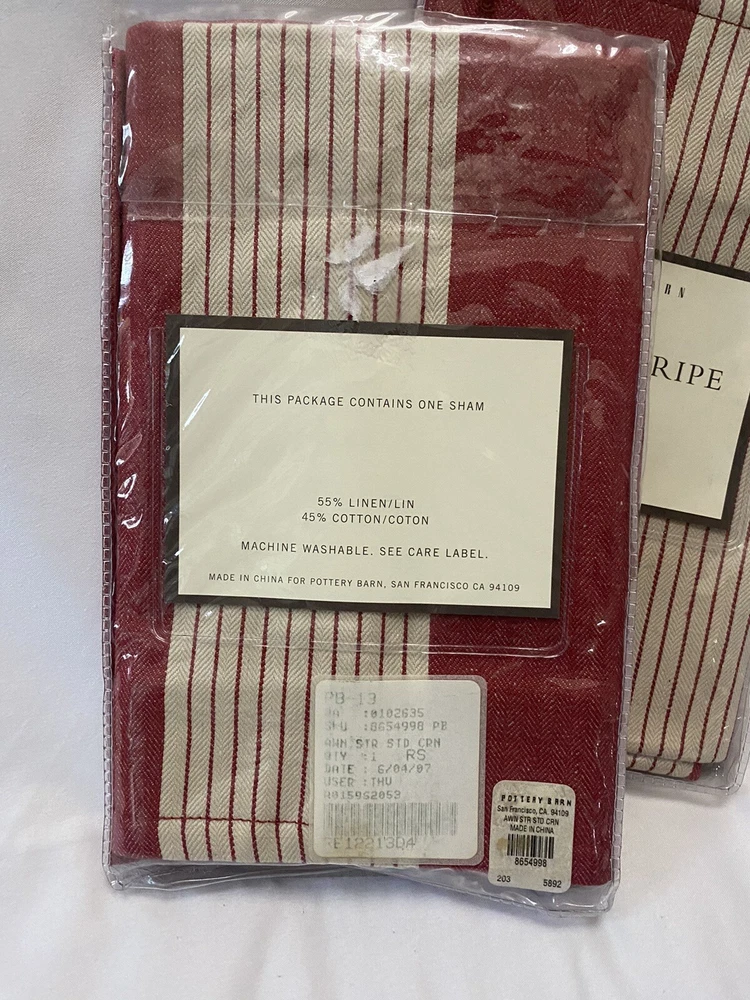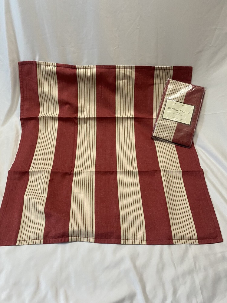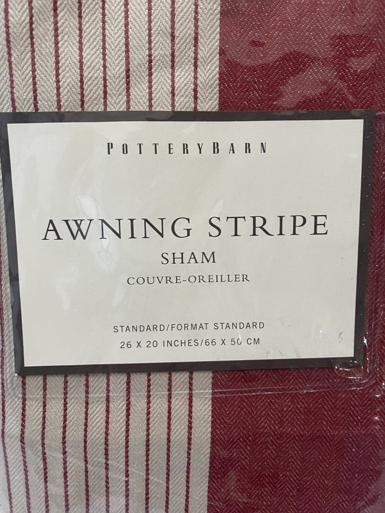 These Pottery Barn Awning Stripe Euro Shams are New in Original Packaging. Shams are Pristine. It Was Removed From Plastic for only a few minutes to photograph. Two Shams Size: 26"X26" Fabric Content: Linen/Cotton These would look fabulous in a Bedroom, Family Room or on a covered patio. I have 2 more I am selling as a set as well.