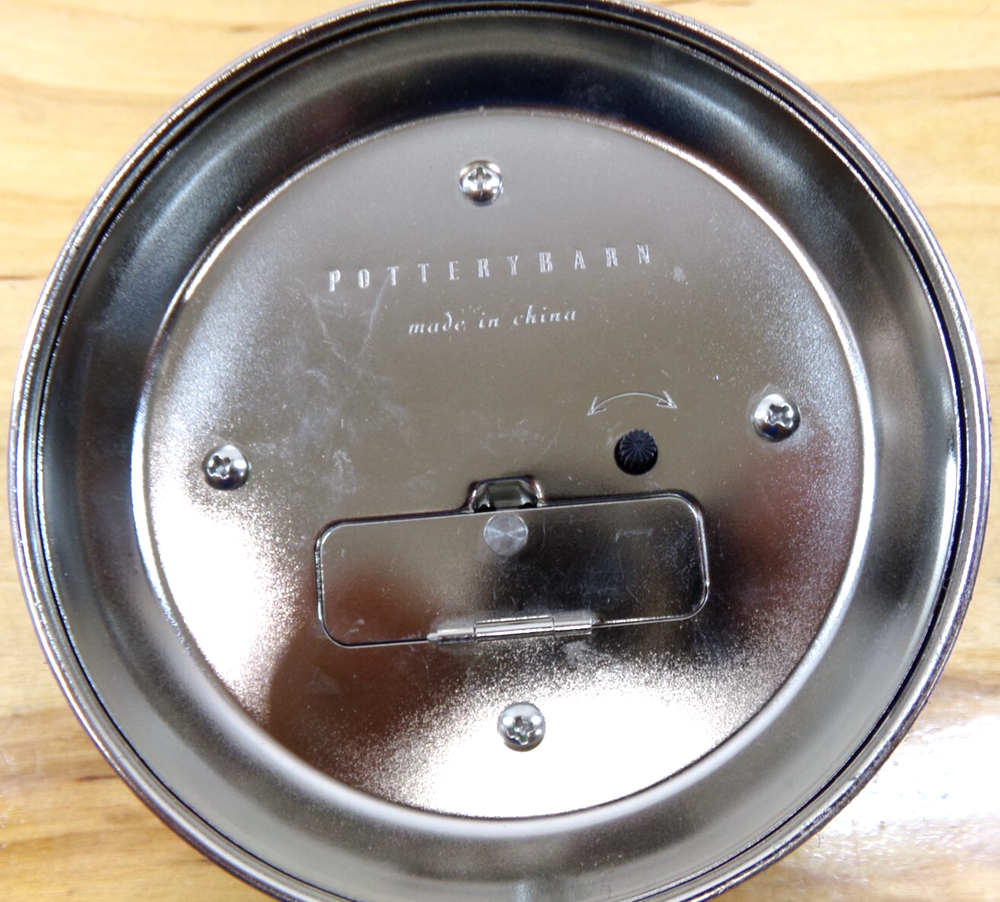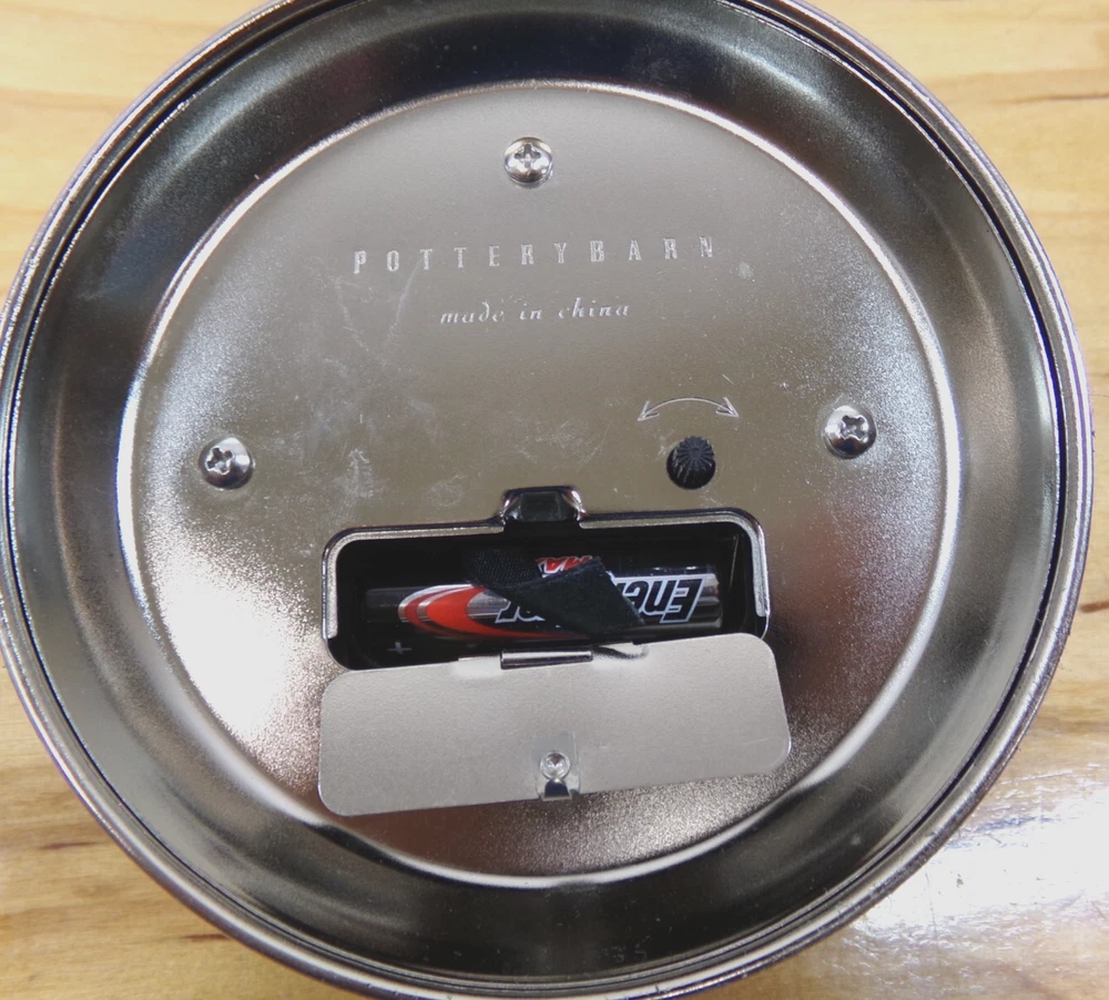 Pottery Barn Tape Measure Rotary Clock 5" Round Tested & Works Takes a "AA" Battery (Not Included) Keeps Good Time - Been on my Desk Working for 2 Weeks No Dings or Dents - Good Preowned Condition Please read the item description and view pictures carefully before bidding. Most of the items we sell come from estate sales and are sold in "as found" condition. Any cleaning, repair or restoration is at the buyer's discretion. We also buy closeouts, discontinued, returned or clearance items in bulk. Boxes may be damaged, torn or out of box all together. We try to describe items as accurately as possible but on some occasions, we may miss something. If you feel your item was not as described in the listing please contact us and we will work with you to resolve any problems. I am always happy to combine on shipping to save the buyer some money, but sometimes, as with dishes / china, I am limited to how much I can combine in order to prevent breakage during shipping. Returns will be accepted only for items not accurately described. We appreciate positive feedback just as much as you. If you feel that your item was not accurately described please contact us prior to leaving feedback so that we can resolve the problem to all of our mutual satisfaction.
