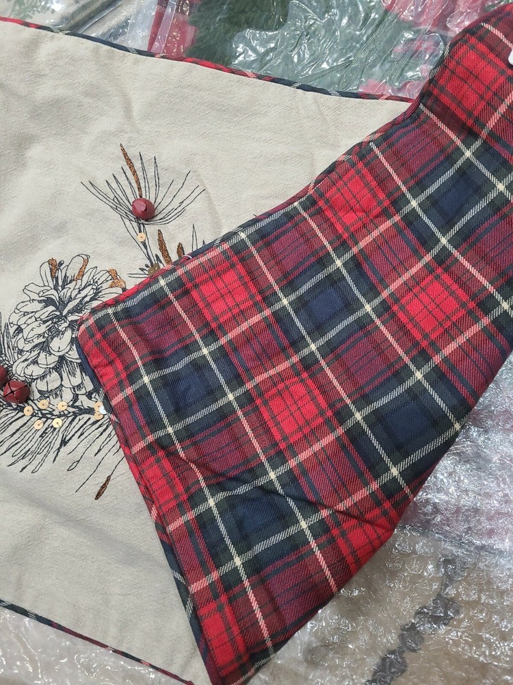 You are purchasing one Pottery barn Tarake pinecone pillow cover embroidered front, plaid zippered back 16x26" new with tags. pb tag has a black line through the paper tag....