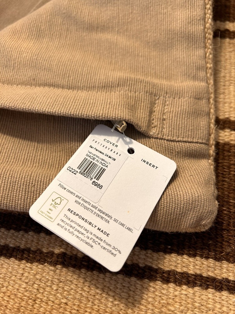 Pottery Barn Tarim Striped Handwoven Lumbar Pillow Cover 20”x30” NWT...