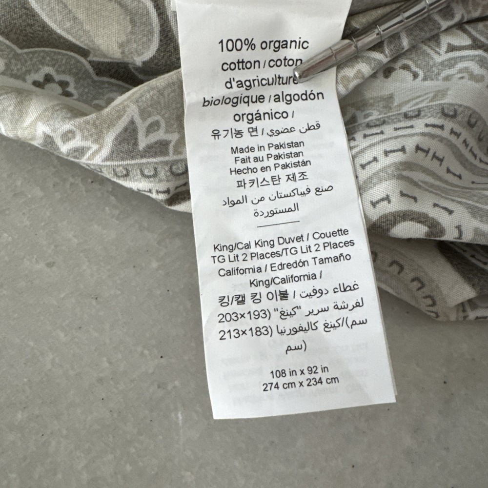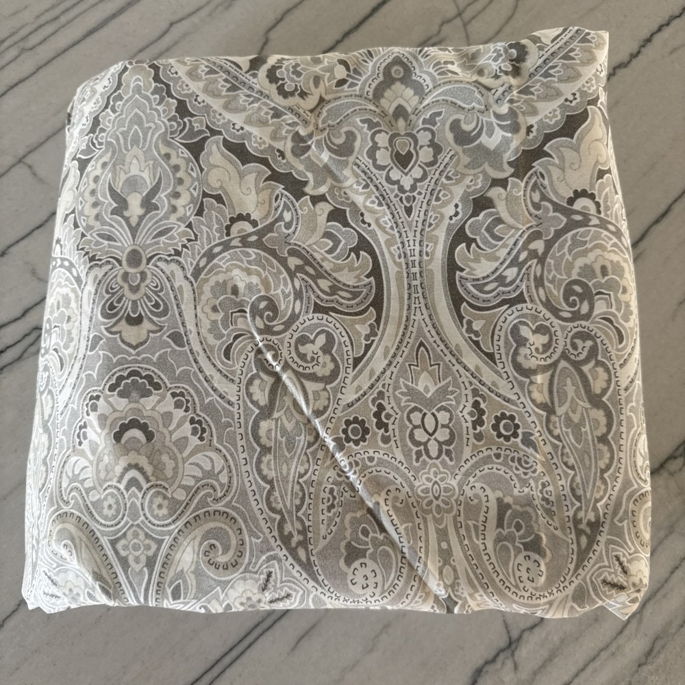 Pottery Barn Taupe MacKenna Paisley King Duvet Cover 100% Cotton Excellent Condition...