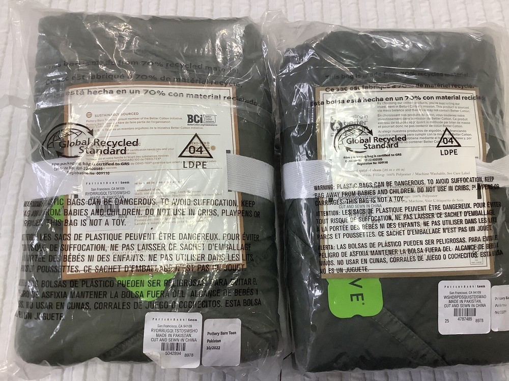 2 Pottery Barn Teen Standard Pillow Shams Army Green 1 of the shams is “Ryder Rugged” 1 of the shams is “Washed Rapids” Have not been out of package so cannot compare the 2 Will ship within 24 hours of payment