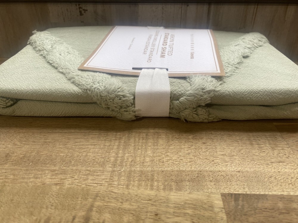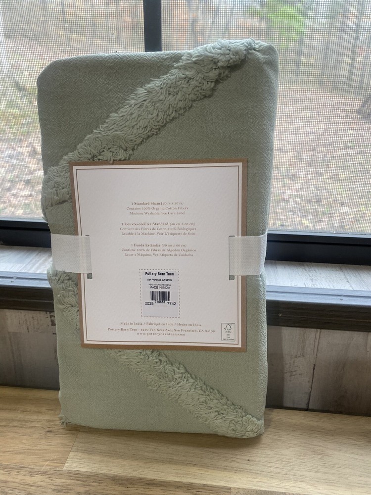 Add a touch of sophistication to your bedroom with this Pottery Barn Teen Ashlyn Tufted Standard Sham. The sham features a stylish green color and is made with high-quality materials to ensure long-lasting durability. It is designed to fit standard size pillows, making it a perfect fit for any bedroom decor. Whether you're a teen or an adult, this sham is sure to complement any interior design. The Pottery Barn Ashlyn model is a popular choice for those who want to add a touch of elegance to their home decor. This pillow sham is ideal for use in the bedroom, living room, or any other space where it can be admired. So, if you're looking for a stylish and durable pillow sham, look no further than this Pottery Barn Teen Ashlyn Tufted Standard Sham.