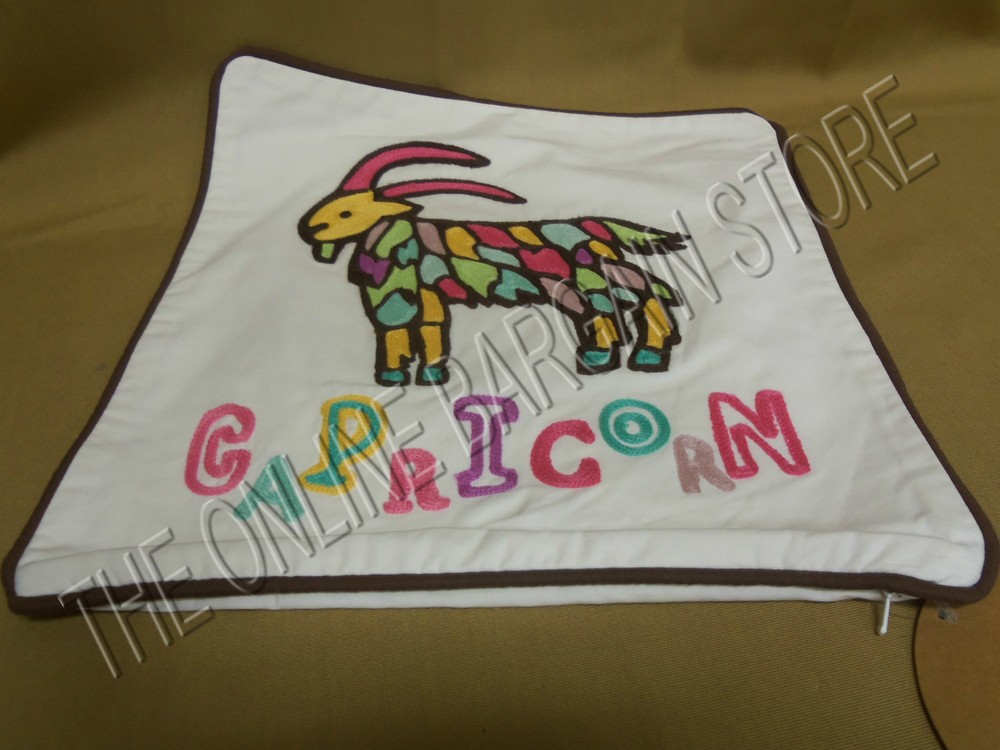 Pottery Barn Teen Astrology Organic Pillow Cover New! Size: 12" square Sign: Capricorn 1 PILLOW COVER ONLY! Show off your sign in eye-catching candy colors. Organic white cotton percale features a crewel-embroidered zodiac sign and coordinating image. 12" square 100% organic cotton percale. Features crewel embroidered artwork and filled brown piping. Reverses to white cotton percale. Hidden zipper closure. Insert sold separately. Machine wash. Capricorn: December 22 - January 19 Oeko-Tex certified, the definitive mark of excellence for products that are healthy for people and the environment. Care Machine wash in cold water; gentle cycle. Use only nonchlorine bleach, if needed. Tumble dry on low heat. Warm iron as needed. See my store for more PBT items! Email with questions. All small items are shipped via Fedex ground. Rates quotes are for continuous 48 states only. Email if you want rate to ship to Alaska, Hawaii or APO, those will have to be done thru USPS and rates can vary. Large items are shipped by common carrier. I will need a contact phone number for those type shipments. Shipper will call ahead to setup a delivery time in which you will need 2 people home to handle the large box(es). When you receive your large item shipment please open and inspect for damage. Please have driver note any damaged sustained to outside or inside of box. Once you sign off that it delivered in good condition you cannot file a claim for damages occurring after the fact. Must be found upon delivery for a claim to be filed and payment to be refunded. Thank you.