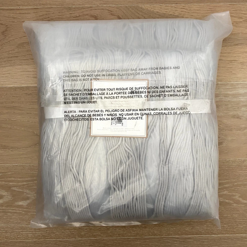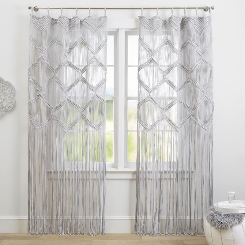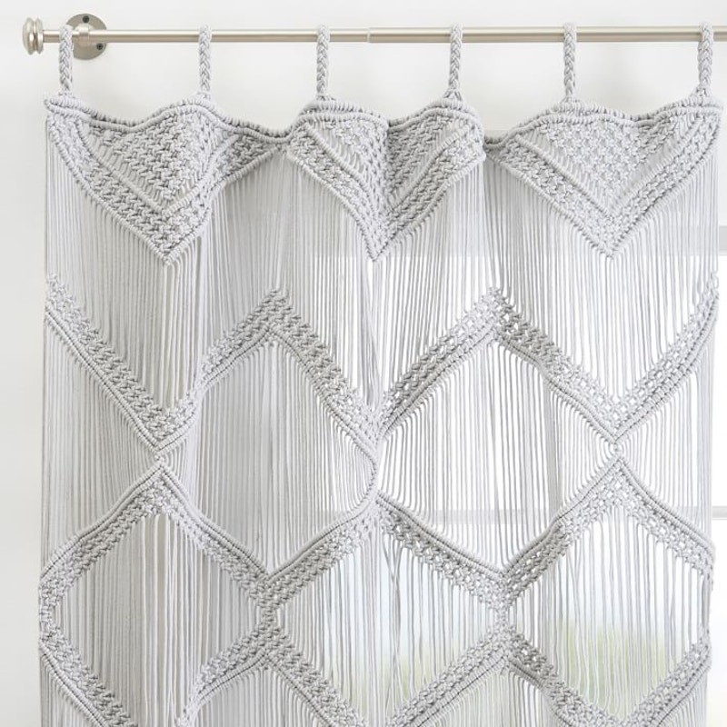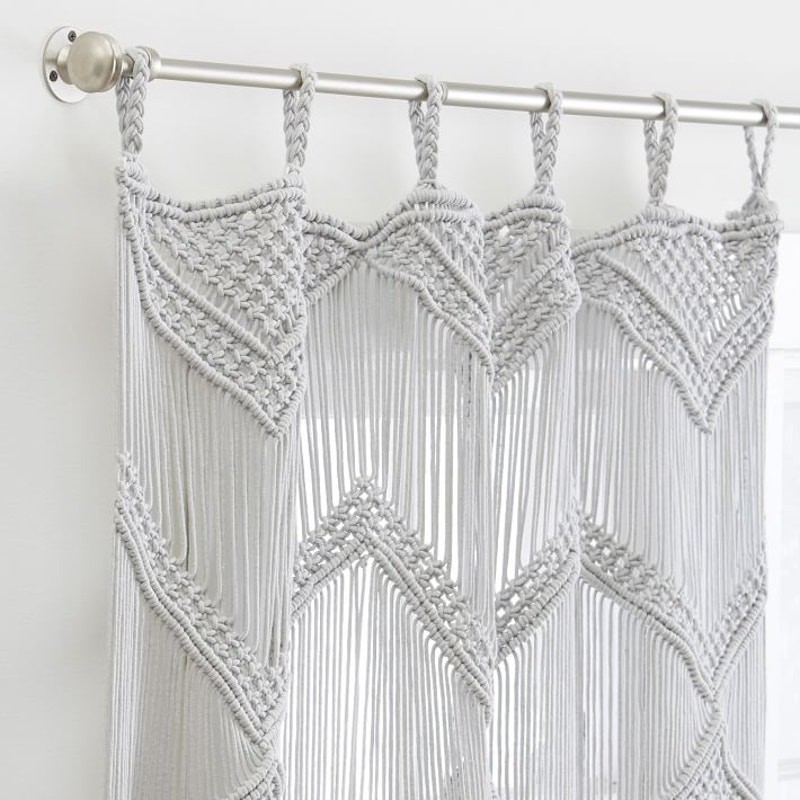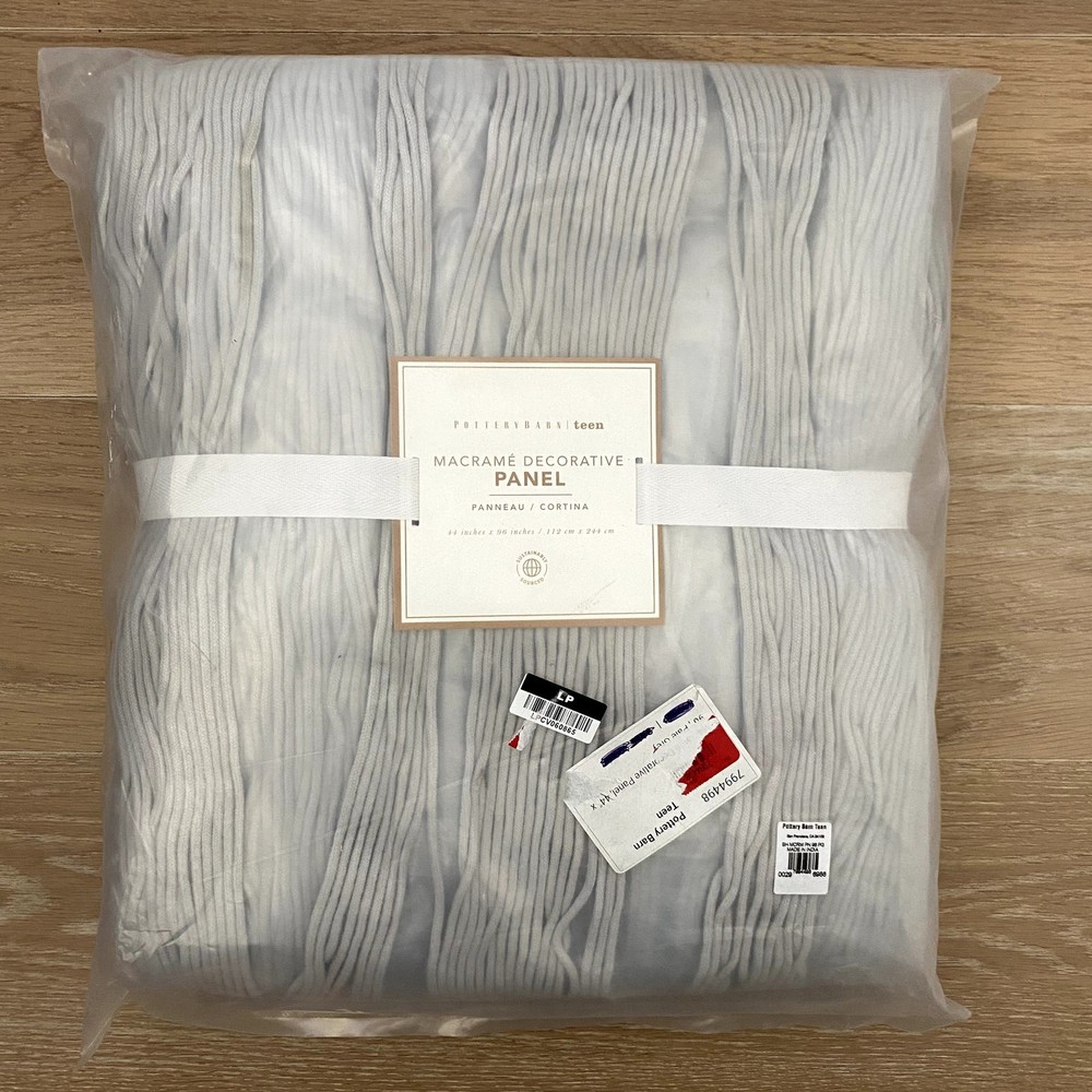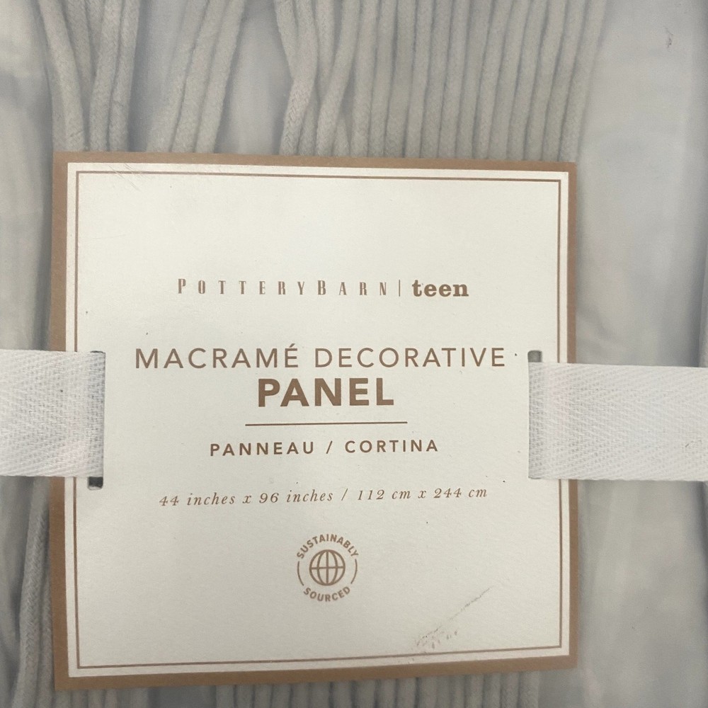 <![CDATA[<div>Add a touch of boho charm to your space with this Pottery Barn Teen Boho Macrame Decorative Panel. Perfect for creating a cozy and stylish atmosphere, this single panel is woven by hand with intricate macrame detailing. Details: Size: 44" x 96" Color: Gray Condition: Brand new in the package Material: Handwoven from 100% cotton Hanging Treatment: Pole pocket for easy installation Note: Stock photo is used for styling purposes only. This listing is for ONE brand new panel. This beautiful panel is ideal for bedrooms, living spaces, or any area that could use a boho-inspired upgrade. Features: - Intricate macrame design for a bohemian aesthetic - Durable and soft 100% cotton construction - Easy to hang with a pole pocket design - Transform your space with this gorgeous and versatile decorative panel!