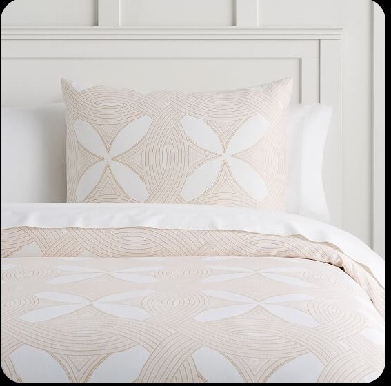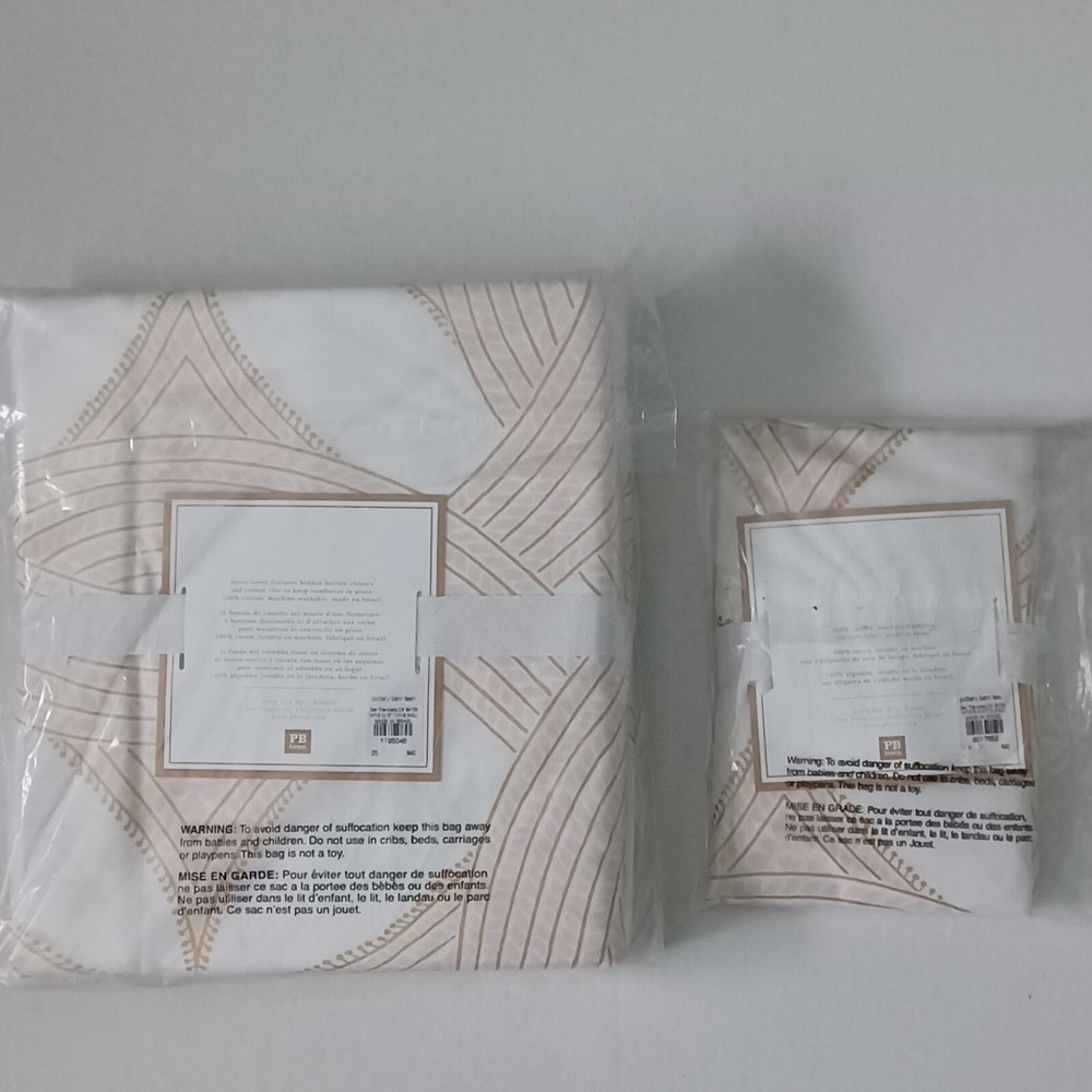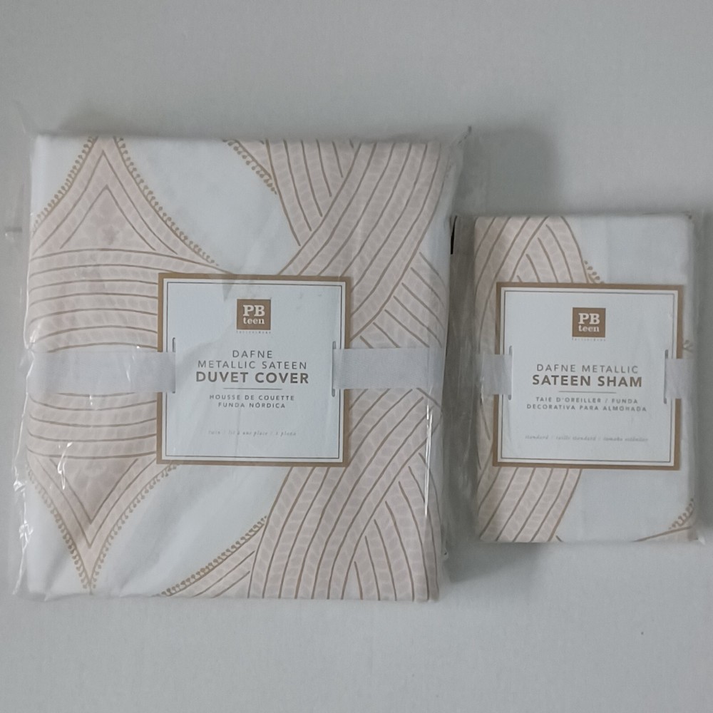 Listing is for 1 Dafne Metallic Sateen Duvet Cover & Standard Sham from Pottery Barn Teen, new with tags as pictured. Color is Blush Pink with Gold, please view online photos for accurate colors, shades and pattern. The only item in this listing is 1 twin duvet cover and 1 standard sham, no inserts or other items are included. PBT says: Add some drama and shine to your sleep space with our Dafne Metallic Sateen Duvet Cover and Sham. Made from super soft-to-the-touch pure cotton sateen, its mesmerizing print features metallic details to make a statement. Twin: 68 x 86". Made of 100% cotton. Machine wash. Imported. In the interest of fair trade I do my best to accurately describe my items. I value my feedback and will promptly correct any mistakes due to an inaccurate item description. Returns are accepted within 14 days provided item is returned unopened with all original packaging. Returns are subject to a 20% restocking fee. Buyer pays return shipping costs. Pottery Barn, Williams-Sonoma and West Elm items are from Pottery Barn and Williams-Sonoma retail stores, catalog and outlets and may be overstock, clearance or catalog returns and as such the internal tag and/or the exterior packaging may be missing or marked through. This in no way affects the functionality of the item unless stated otherwise in the listing. Items are inspected prior to listing and again at time of shipment and anything noted is included in the item description. I am not affiliated with Pottery Barn/Williams Sonoma. My items come from a smoke-free home. The free shipping quoted is for the lower 48; AK, HI, PR, USVI and Canada please email for shipping quote prior to purchasing. Most items ship within 24 hours of confirmed payment.